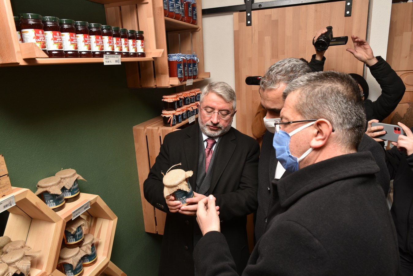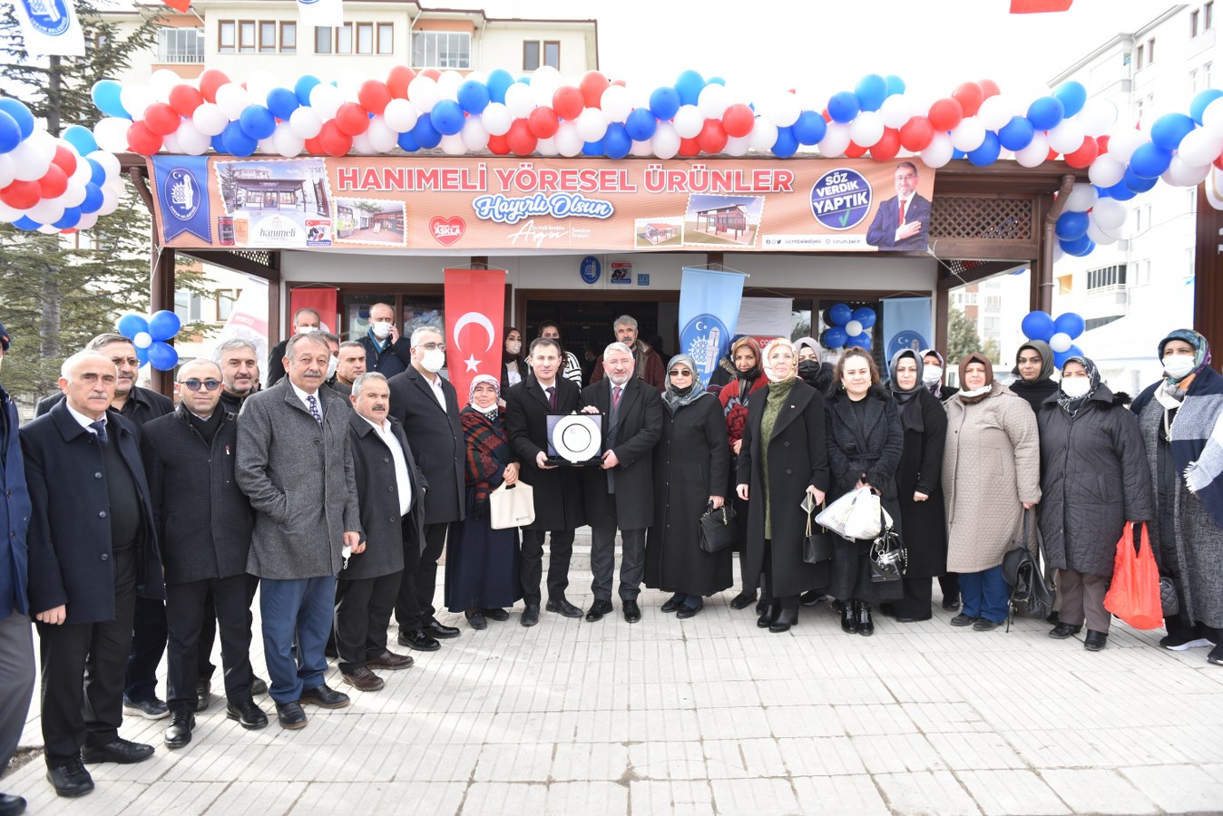 Konuşmaların ardından Hanımeli Yöresel Ürün satış noktalarının açılış kurdelesi kesildi. Açılış töreninde davetlilere sıcak süt, Halket sucuk ve mantı ikram edildi.