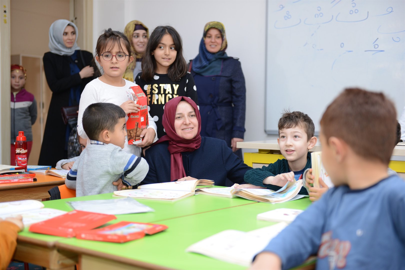 Hatice Külcü’ye Şehit Ömer Faruk Darbaş Kur’an Kursu’nu ziyaretinde Belediye Başkan Yardımcısı Ahmet Yabacıoğlu’nun eşi Sıdıka Yabacıoğlu ve Kadın Kültür Merkezlerinin yöneticileri eşlik etti. 4-6 yaş Kur’an Kursu öğrencileri ile tek tek tanışarak sohbet eden Hatice Külcü, çocuklara Belediye Başkanı Muzaffer Külcü tarafından hediye edilen oyuncakları takdim etti.