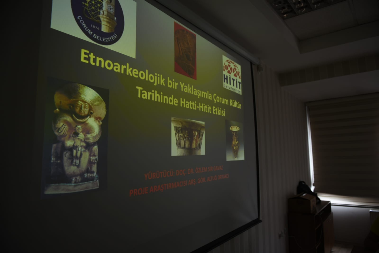 Çorum Belediyesi ile Hitit Üniversitesi arasında yürütülmekte olan “Çorum İçin Bir Projem Var” kapsamında 4. Dönem başvurularından projesi kabul edilen Hitit Üniversitesi Öğretim Üyeleri Hititolog Doç. Dr. Özlem Sir Gavaz ve Araştırma Görevlisi Altuğ Ortakçı “Etnoarkeolojik Bir Yaklaşımla Çorum Kültür Tarihinde Hatti-Hitit Etkisi” konulu araştırma projesi ile ilgili sunumu gerçekleştirdi.