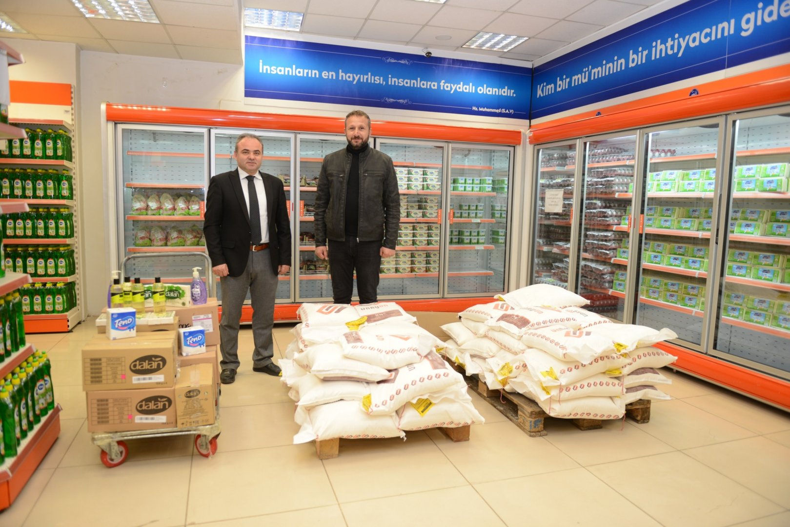 Belediye Başkanımız Dr. Halil İbrahim Aşgın’ın yardım kampanyası çağrısına ilk cevap hayırsever esnafı Nuri Şengül’den geldi. Şengül, Gıda Bankasına un ve temizlik malzemelerini bağışladı.