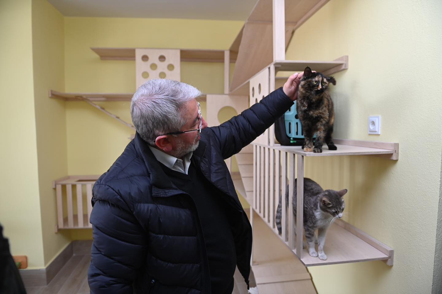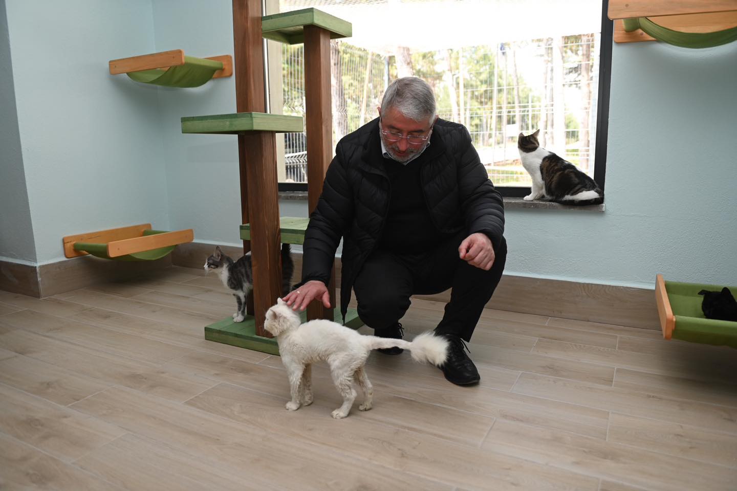 Belediye Başkanı Dr. Halil İbrahim Aşgın,  geçtiğimiz ay hizmete giren sahipsiz kediler müşahede binasıyla ilgili de bilgi verdi.  Sahipsiz sokak kedileri için 17 Şubat Dünya Kediler Günü’nde muazzam bir eseri hizmete sunduklarını belirten Başkan Aşgın “Şu anda sahipsiz, kimsesiz kedilerin kimi olmak için kedi villamız hizmette. Sahipsiz sokak kedilerini en güzel şekilde, alttan ısıtmasıyla, havalandırmasıyla, gezinti alanlarıyla gerçekten muazzam bir şekilde, her türlü veteriner hizmeti vererek misafir ediyoruz.” dedi.