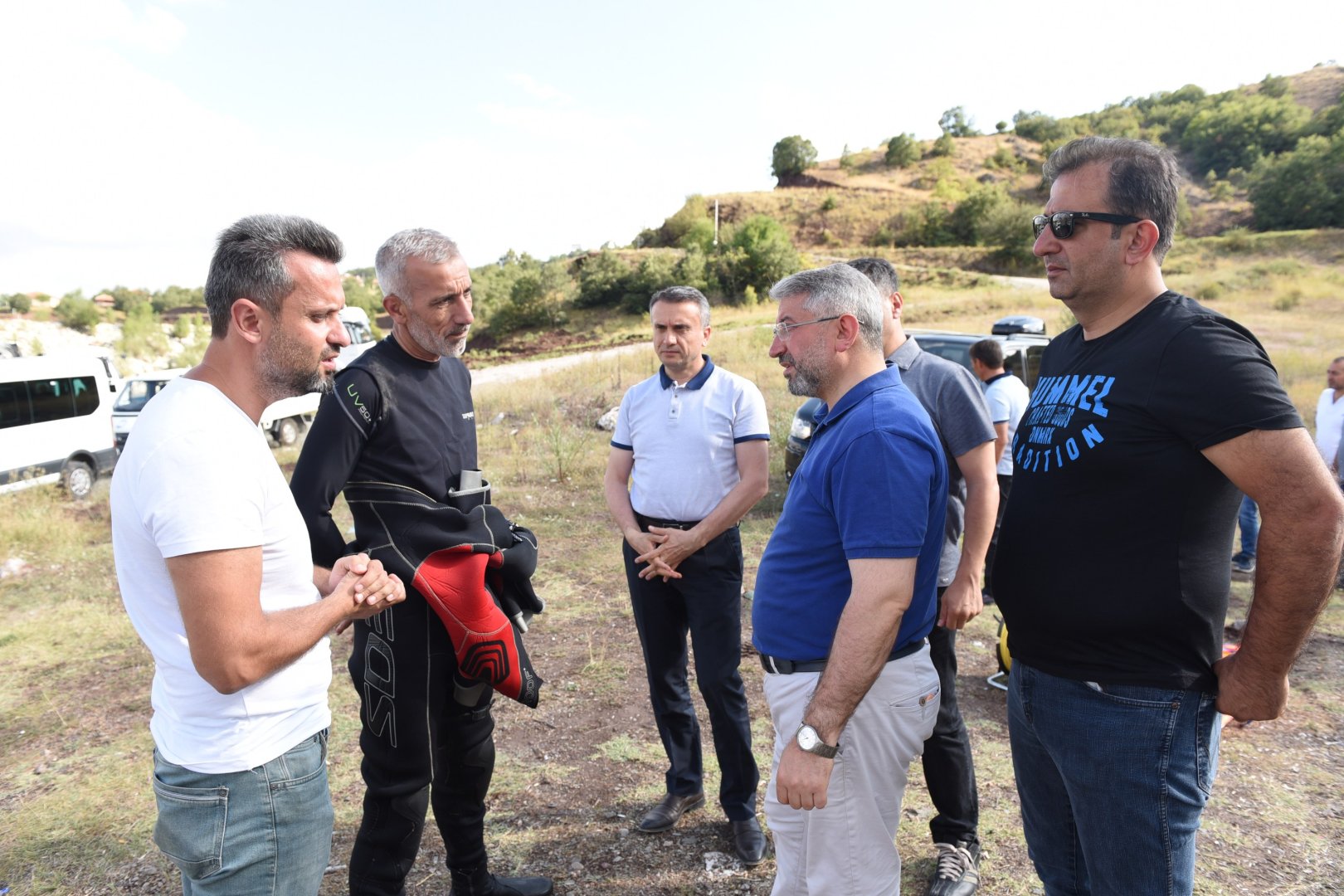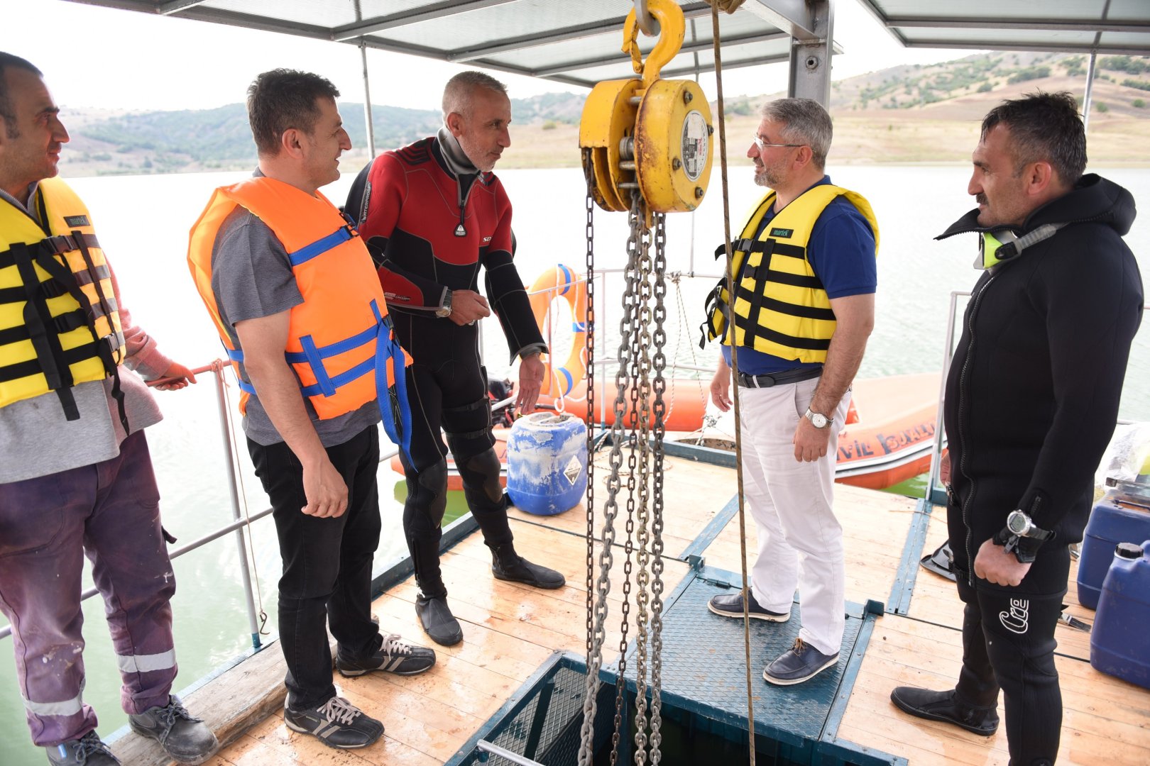 Belediye Başkanı Dr.Halil İbrahim Aşgın’ın Yeni Hayat Barajı’na gerçekleştirdiği ziyarette İtfaiye Müdürü Adil Balcı suyun altına inerek incelemeler yaptı. Çorum Belediyesi İtfaiyesinde görevli dalgıç Yakup Fındıkçı ile birlikte suyun altına inen İtfaiye Müdürü Adil Balcı, baraj dibinde incelemeler yaptı. Üstten su alma platformunun bulunduğu bölgeden suyun altına giren ve suyun arıtma tesisine gönderildiği hat üzerinde incelemelerde bulunan İtfaiye Müdürü Adil Balcı boru hattında bir takım sıkıntıların meydana geldiğini ancak halk sağlığına etki edecek bir durumun söz konusu olmadığını belirterek boru hattının düzeltilmesi için hemen çalışmalara başladıklarını söyledi.