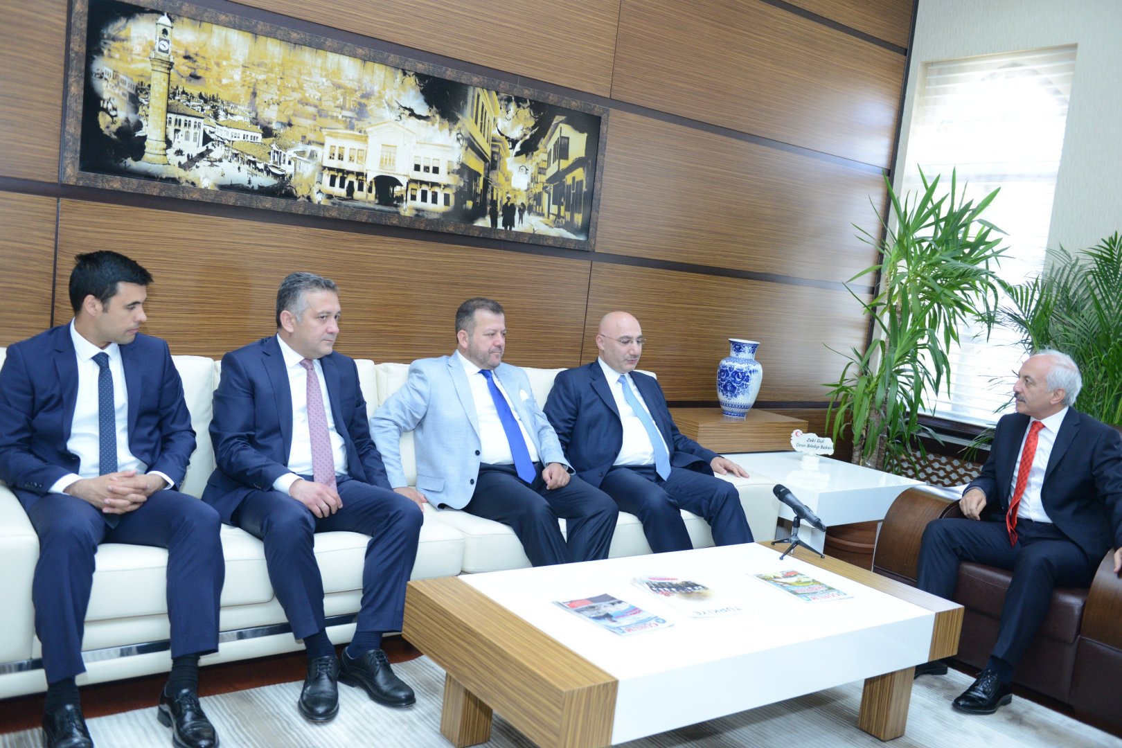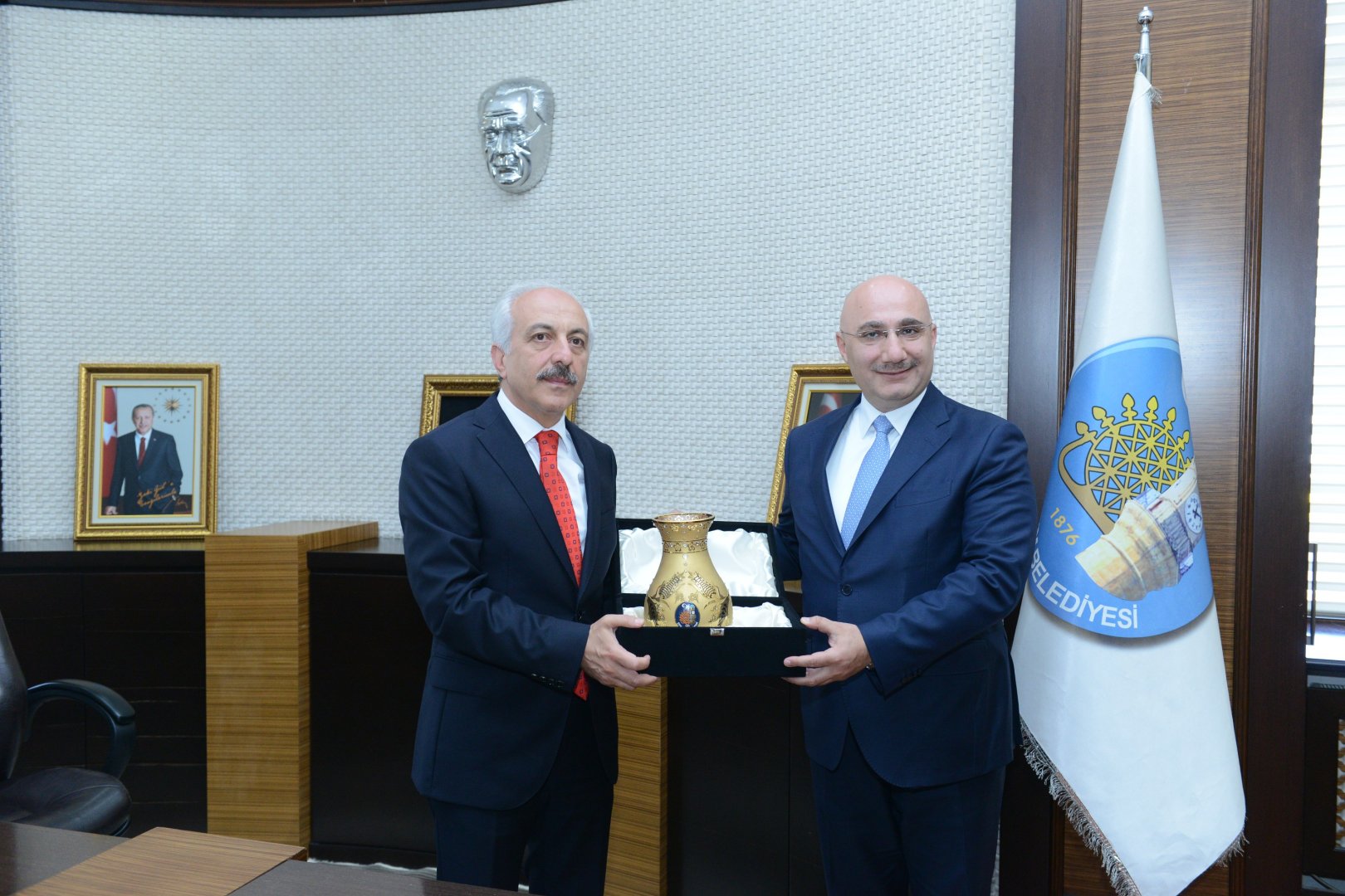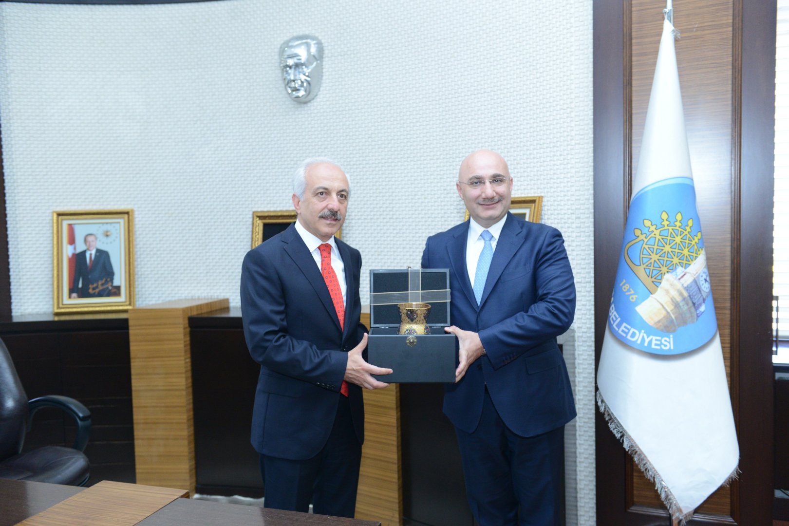 Halk Bankası’nın kuruluşunun 80. Yılı nedeniyle Halk Bank Genel Müdürü hemşehrimiz Osman Aslan, Belediye Başkanı Zeki Gül’ü makamında ziyaret etti.
