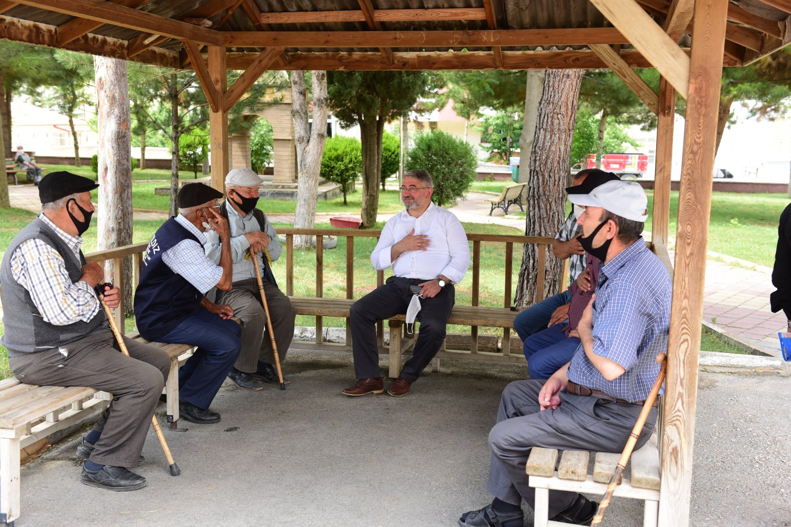 Başkan Aşgın, Hacı Bektaş-ı Veli Vakfında yapılması planlanan çalışmalarla ilgili Çorum Şube Başkanı Nurettin Aksoy’u ziyareti sonrası vakıf bahçesinde rast geldiği Aşık Musa Yıldız ile bir süre sohbet etti. Geçtiğimiz günlerde köyüne giderek deyişlerini dinlediği Aşık Musa Yıldız’ı vakıf bahçesinde gören Başkan Aşgın ile Musa Yıldız arasındaki diyaloglar çevrede oturanları da mest etti. Aşık Musa Yıldız, kendine özgü deyişleri ile Başkan Aşgın’a ve çevresindekilere deyişler okudu.