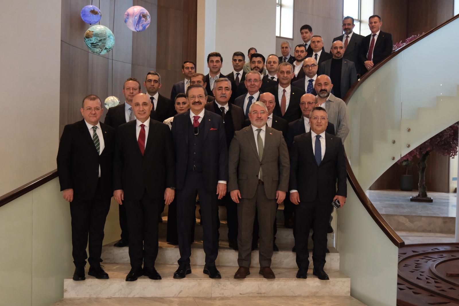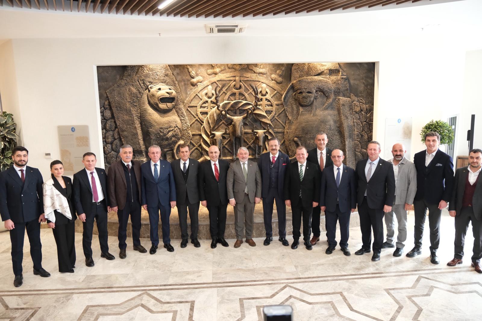 TSO Konferans Salonu’nun açılışı dolayısıyla Çorum’a gelen Türkiye Odalar ve Borsalar Birliği (TOBB) Başkanı Rifat Hisarcıklıoğlu ile Halkbank Genel Müdürü, hemşehrimiz Osman Arslan, Çorum Belediye Başkanı Dr. Halil İbrahim Aşgın’ı makamında ziyaret etti.