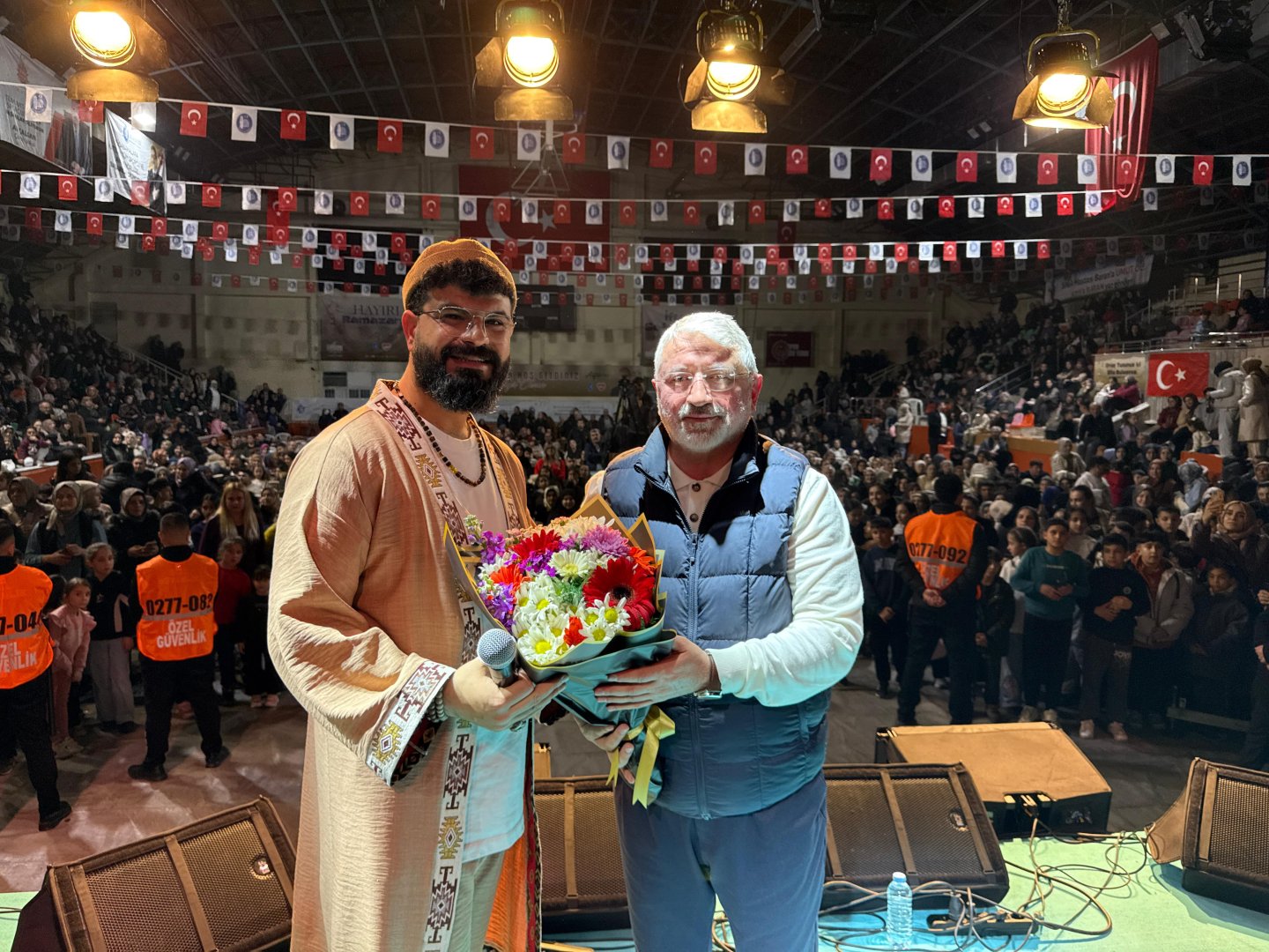 Gecenin sonunda Belediye Başkanı Dr. Halil İbrahim Aşgın sanatçı Fadıl Aydın’a çiçek ve hediye takdiminde bulundu.