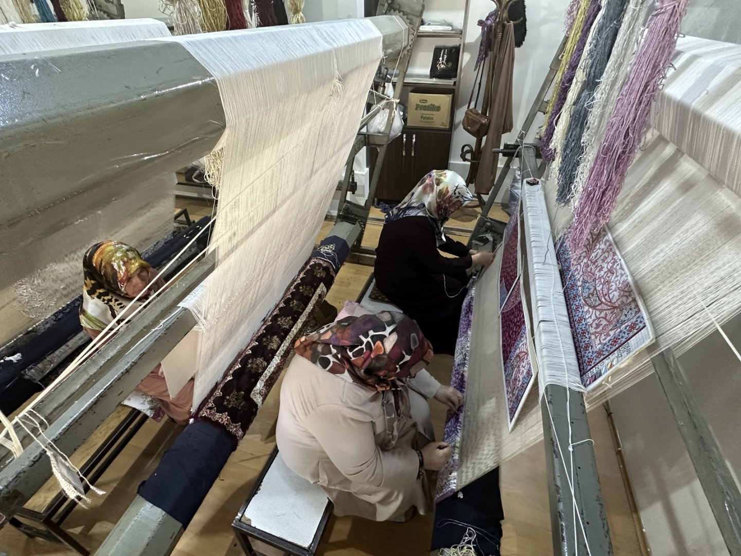 halı dokuma kursuna katılan hanımlar hem halı dokumasını öğrendiler hem de