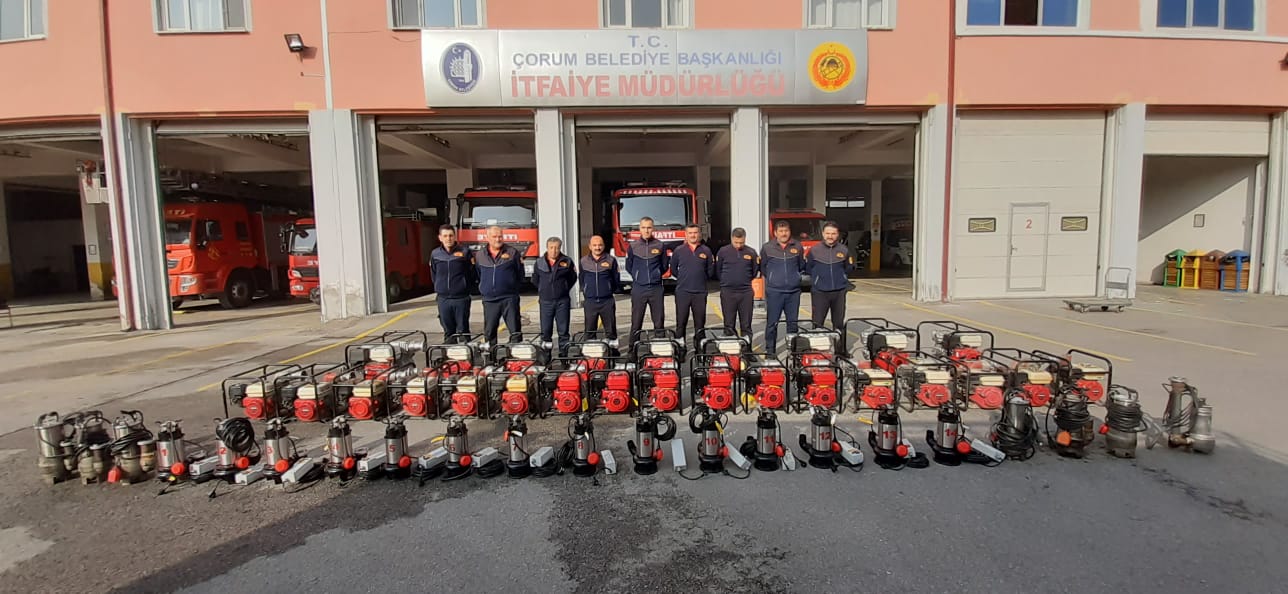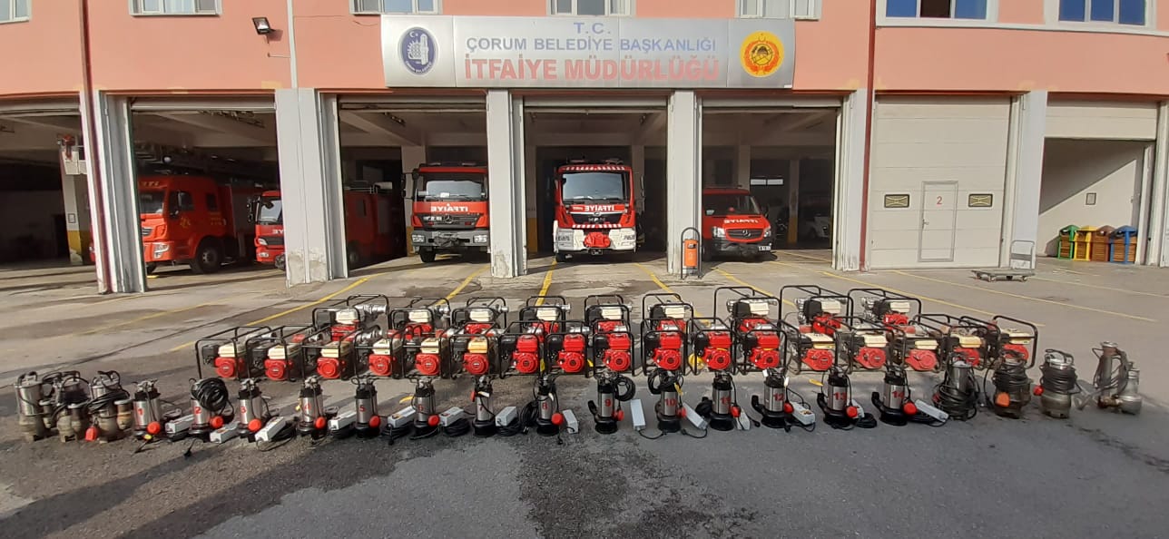 Çorum Belediyesi İtfaiye Müdürlüğü yaşanılacak olası bir su baskını durumunda müdahale etmek üzere bünyesine 14 dalgıç ve 5 benzinli olmak üzere 19 pompa dahil etti.