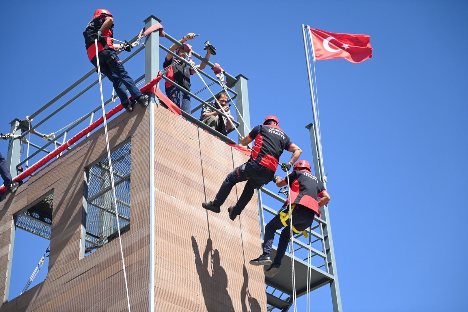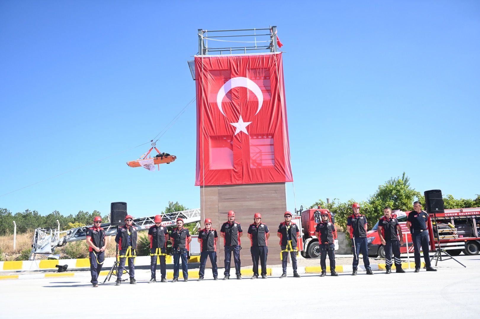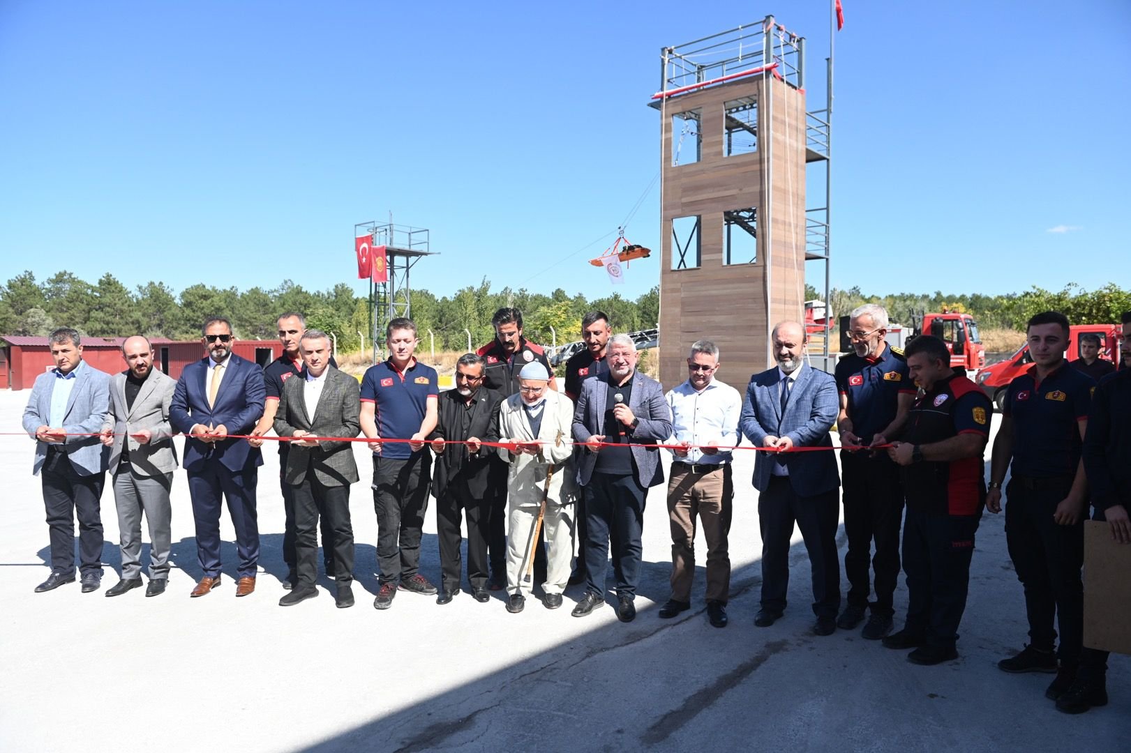 Konuşmaların ardından etkinlik, itfaiye ekiplerinin çok zor koşullarda bile görevlerini yapmaya daima hazır olduklarını ispatlayan bir gösteri yaptı. Gösteri sonrasında protokol üyeleri tarafından İtfaiye Eğitim Parkı’nın kurdelesi kesilerek açılış gerçekleştirildi. Eğitim parkını gezen davetlilere parkur tanıtılarak itfaiyenin kullandığı araç gereçler sergilendi. Törenin sonunda emekli itfaiye personeli ve en genç itfaiye eri ile birlikte pasta kesildi.