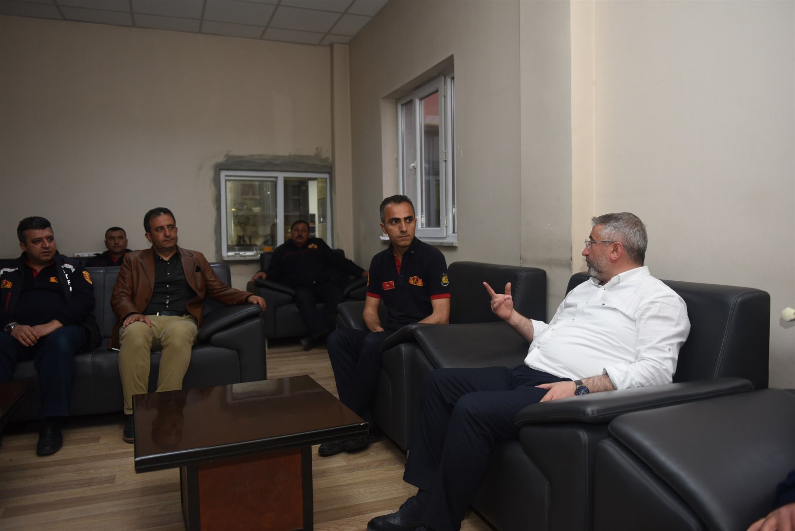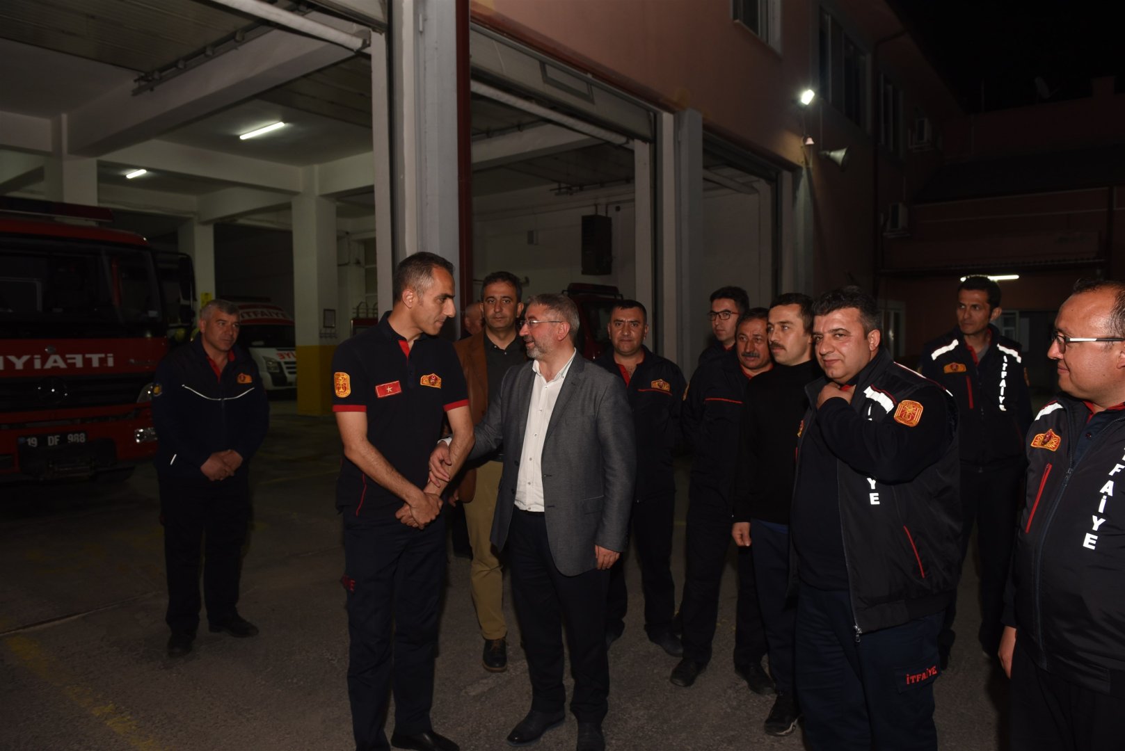 Vardiya amiri Fatih Cıdık’tan işleyişle ilgili bilgiler alan Aşgın daha sonra itfaiye çalışanları ile kısa süreli bir istişare toplantısı gerçekleştirdi.