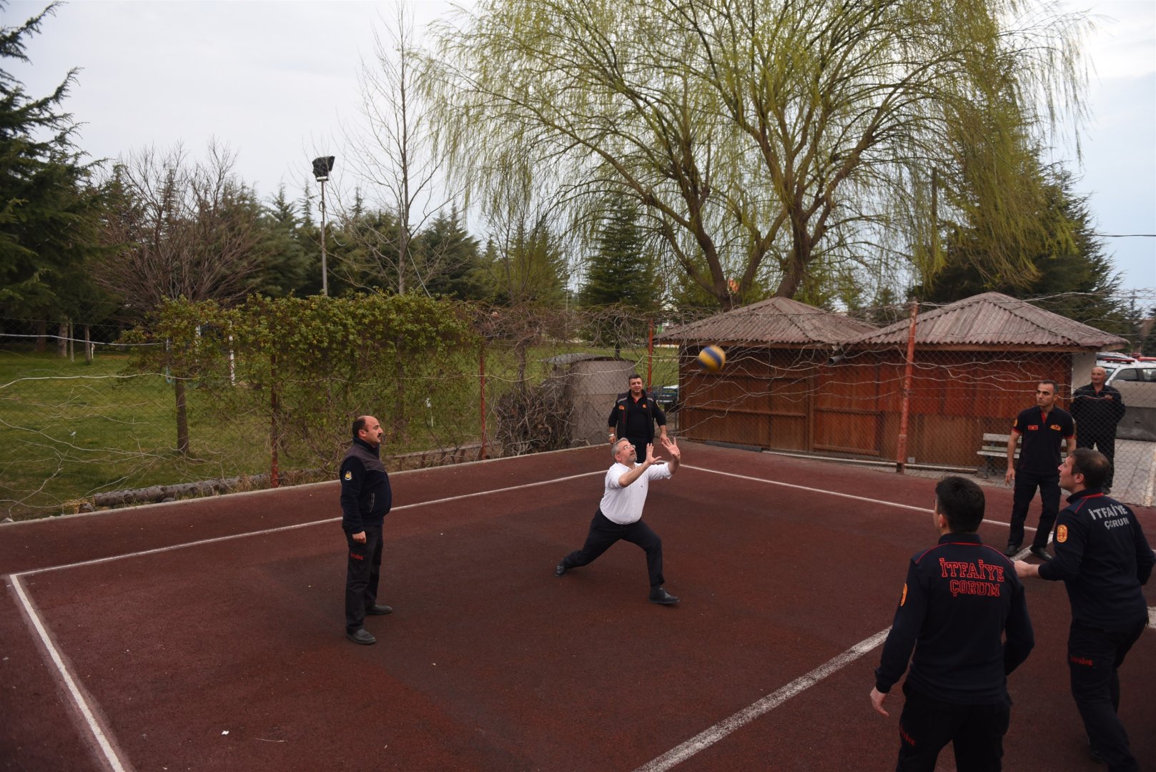 İlk birim ziyaretini Çorum Belediyesi İtfaiye Müdürlüğü’ne yapan Belediye Başkanı Dr. Halil İbrahim Aşgın, itfaiye personeli ile önce voleybol oynadı daha sonra ise sohbet etti. Akşam saatlerinde Çorum Belediyesi İtfaiye Müdürlüğü’ne Belediye Başkan Yardımcısı İsmail Yağbat ve Özel Kalem Müdürü Fatih Özüyağlı ile birlikte sürpriz bir ziyaret gerçekleştiren Belediye Başkanı Dr. Halil İbrahim Aşgın, itfaiye çalışanlarına voleybol oynama isteğinde bulundu. Voleybolda hünerlerini ortaya koyan Başkan Aşgın’ın takımı ilk seti rahat kazandı.