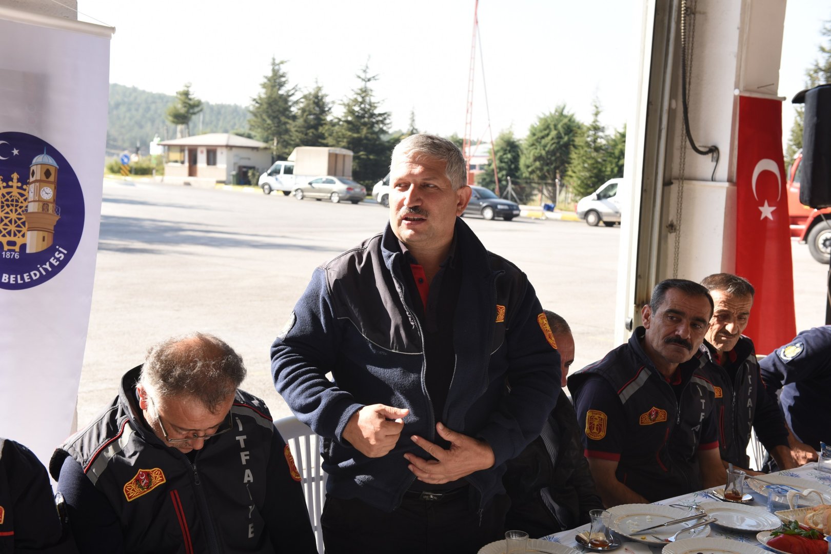 Kahvaltı programı öncesinde konuşma yapan Belediye Başkanı Dr. Halil İbrahim Aşgın itfaiye personelinin gecelerini gündüzlerine katarak özveri ile çalıştığını belirtti.