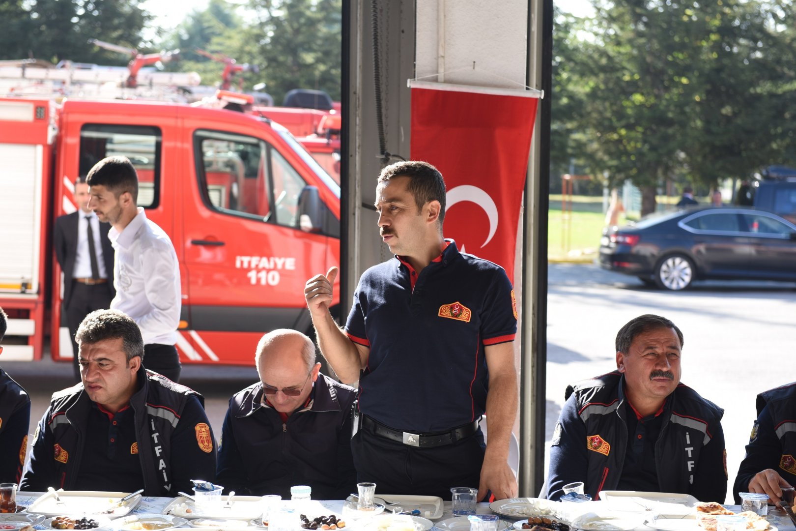 İtfaiye Müdürü Adil Balcı kendilerini hiçbir zaman yalnız bırakmayan Belediye Başkanı Dr. Halil İbrahim Aşgın ve Belediye Başkan Yardımcılarına teşekkür etti. İtfaiye çalışmaları hakkında da bilgi veren Adil Balcı “İtfaiyecilik 1925’te Cumhuriyet’in kurulmasının ardından belediyelere devroldu. Öncesinde askeri disiplin içerisinde Yeni Çeri Ocaklarında faaliyetlerini yürütmekteydi. Aynı disiplin üzerine bizlerde çalışmalarımızı sürdürüyoruz. Gerek yangınlar, gerek kurtarma faaliyetlerinde vatandaşların bir çok paralar ödeyerek aldıkları eşyalarını evlerini bırakıp çıktıkları anda sizler olay mahaline giriyorsunuz ve kurtarma çabası içerisinde bulunuyorsunuz. Çalışmalarınızdan dolayı ben bir kez daha hepinizi ayrı ayrı tebrik ediyorum. Hep beraber bu kutlu vazifeyi daha yukarılara çıkaracağımızı ümit ediyorum” dedi.