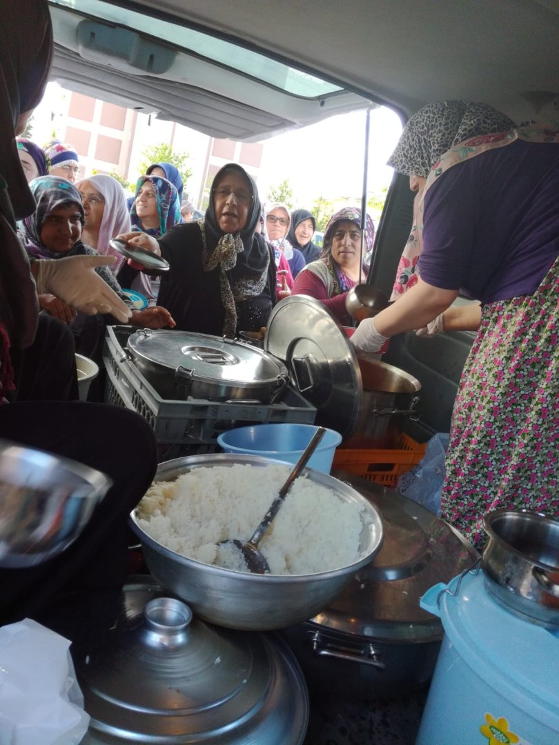 Yemek dağıtıma etkinliğine Belediye Başkanı Zeki Gül’ü eşi Halime Gül, Kadın Meclisi Başkanı Şahiste Uçar ve Kadın Meclisi Üyeleri katıldı.