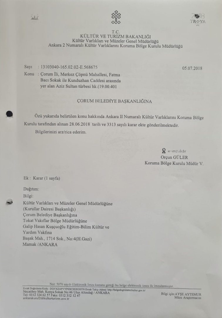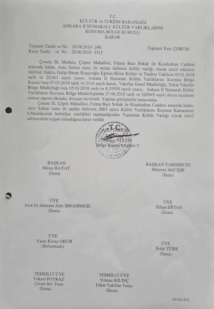 Prof. Dr. Arif Ersoy Caddesi içerisinde kalan kaçak yapı, Çorum Belediye Meclisinin 6 Temmuz 2006 tarih ve 19 sayılı kararı ile kabul edilen imar planında Çöplü Mahallesi 21 ada 7, 8, 43, 44 nolu parselleri kapsayan alan yol olarak işaretlenmiştir. Galip Hasan Kuşçuoğlu Vakfı tarafından ilgili imar planı kesinleştikten sonra 2011 yılında söz konusu parseller üzerine türbe ve külliye inşa edilmiştir. Plana konu bölgede işaretli yolun açılması için Belediyemizce kamulaştırma işlemlerinin başlaması üzerine vakıf, planın ve uygulamanın iptali için çeşitli davalar açmıştır. Konuya ilişkin hukuki süreç aşağıdaki şekildedir.