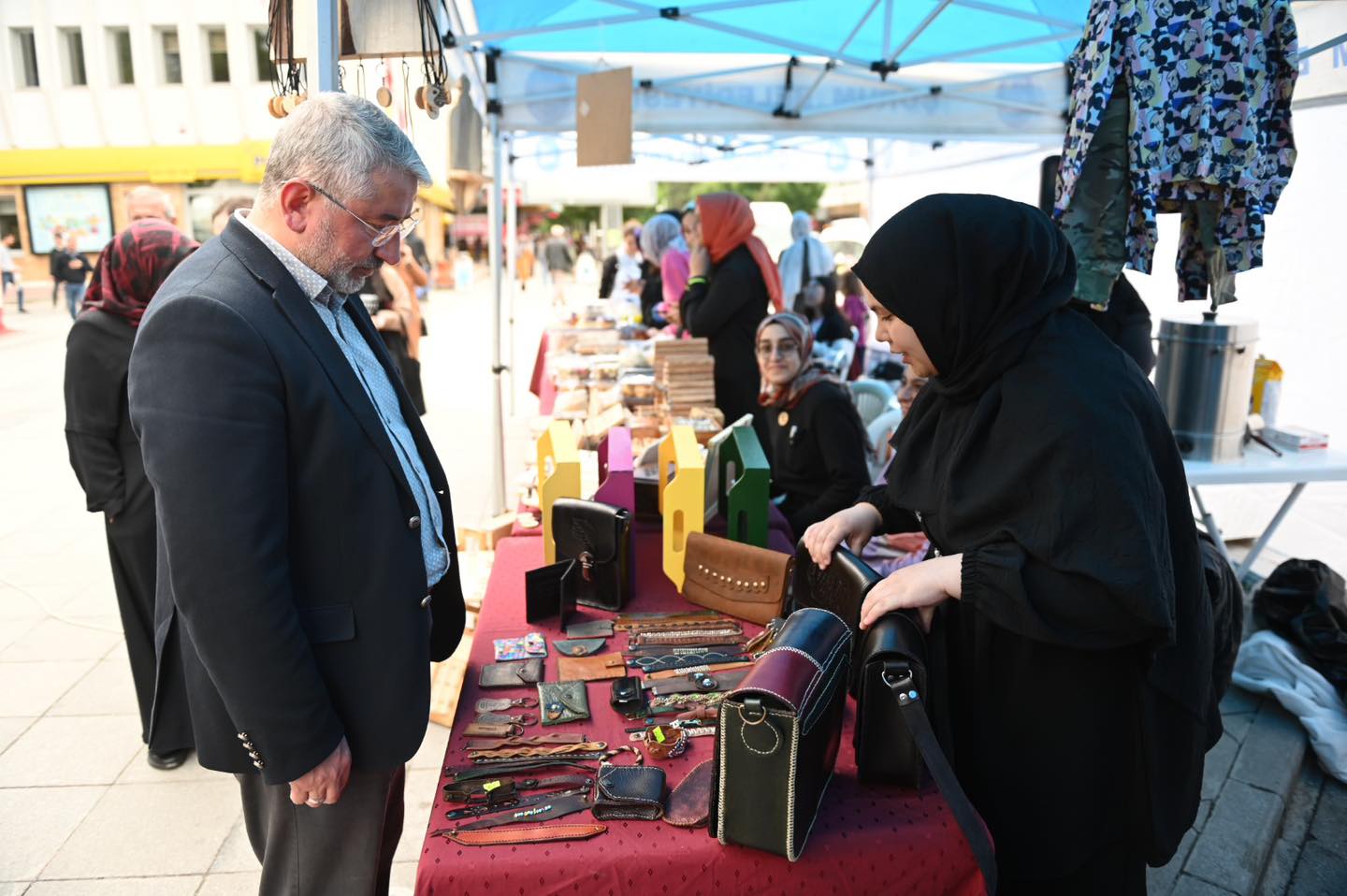 Satış stantlarını ziyaret eden Belediye Başkanı Dr. Halil İbrahim Aşgın, kursiyerlerle ve usta öğreticilerle sohbet ederek alışveriş yaptı. Çorum Belediyesi Kadın Kültür ve Sanat Merkezleri’nin birbirinden farklı kurslarla kadınların yeteneklerini geliştirmelerine yardımcı olduğunu dile getiren Başkan Aşgın, kadınlara yönelik kursların devam edeceğini açıkladı. Başkan Aşgın “Kurslarımız istidama katkı sağladığı gibi kursiyerlerimizin el becerilerini geliştirmelerine de fırsat sunuyor. Milli Eğitim Müdürlüğü ve Halk Eğitim Merkezimize de kurslarımıza sağladığı katkılardan dolayı teşekkürlerimizi sunuyorum. Hemşehrilerimizi 2 gün açık olacak stantlarımıza davet ediyorum.” dedi.