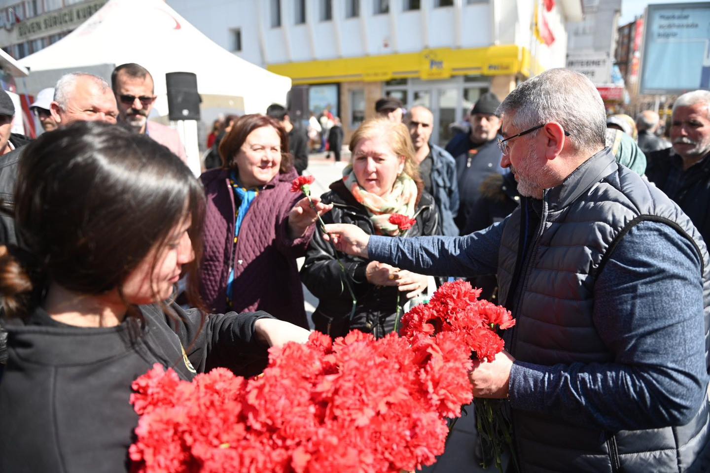 Başkan Aşgın, kermese katkı veren kadınların 8 Mart Dünya Kadınlar Gününü kutladı ve kadınlara karanfil takdim etti.