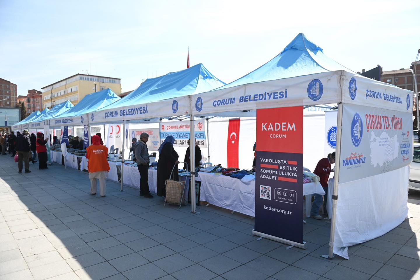 Depremzedeler için “Kardeşlik Çarşısı Kermesi” açıldı. Kadınlar, Çorum Belediyesi’nin öncülüğünde, depremzedeler için tek yürek oldu.