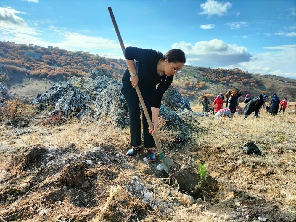 Türkiye’nin yüz yılına nefes olacak fidanları toprakla buluşturduklarını belirten Kadın Kültür ve Sanat Merkezi Koordinatörü Gülhan Cevher, “11 Kasım Milli Ağaçlandırma günü etkinlikleri kapsamında Çorum Orman İşletme Müdürlüğü’nün belirlediği alanda kursiyerlerimizle birlikte üç gün boyunca fidan dikimi gerçekleştirdik. Çorum Belediyesi Kadın Kültür ve Sanat Merkezi kursiyerlerimiz sayesinde 500 fidanı toprakla buluşturarak geleceğe nefes olduk” dedi.