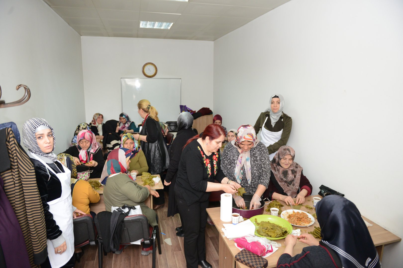 Kadın Kültür ve Sanat Merkezi Müdürü Nuran Hakyemez, 8 Mart Dünya Kadınlar Günü’nde farklı bir etkinlik yaptıklarını Afrin bölgesindeki askerler için sarma ve kurabiye yaparak onlara gönderildiğini dile getirdi. Mehmetçiklere yanlarında olduklarınıhatırlamak istediklerini belirten Nuran Hakyemez “Bizler yılın 365 günü hanımlarımıza hizmet ediyoruz. 8 Mart Dünya Kadınlar Günü nedeniyle farklı bir etkinlik yapalım istedik. Özellikle Afrin Bölgesindeki askerlerimiz için dualarımızı zaten yapıyoruz ama fiili dualarımızla da onların yanında olalım düşüncesiyle sarma ve kurabiye yapıp onlara gönderilim istedik. Anneler olarak, kadınlar olarakdualarımızın Mehmetçiklerimizle birlikte olduğunu bir kez daha gösterelim dedik” ifadelerine yer verdi.