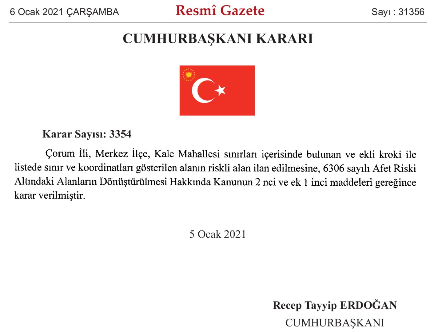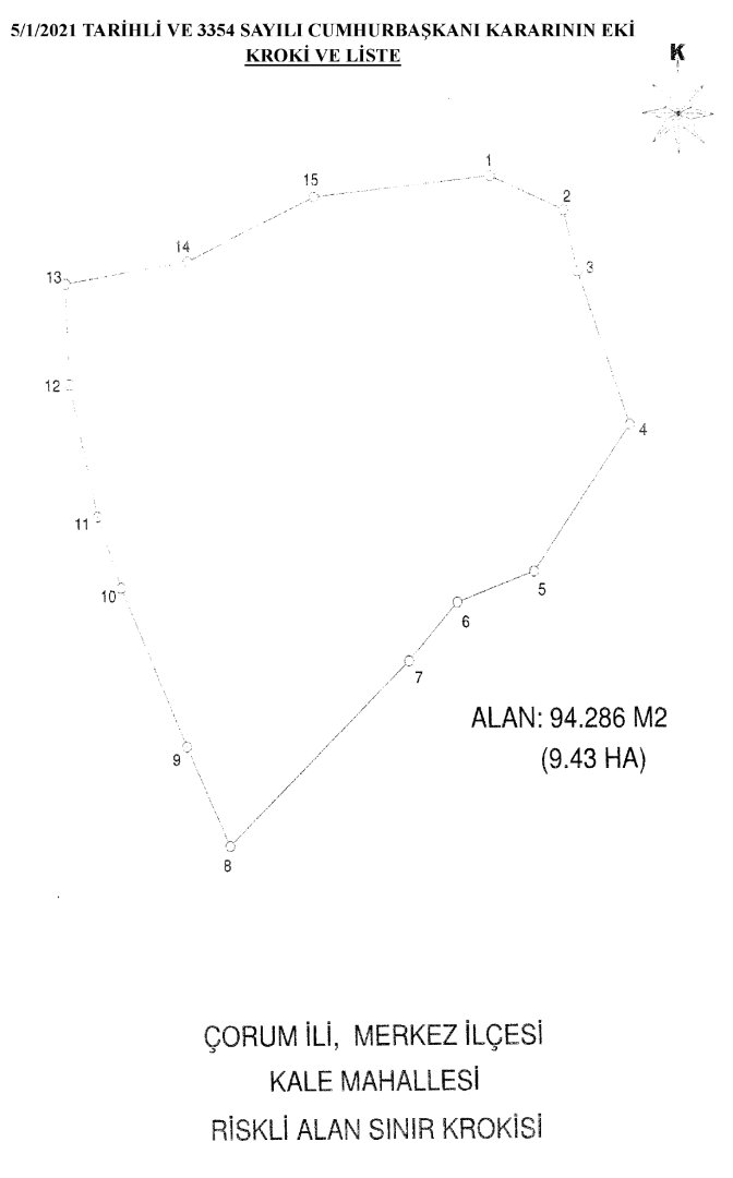 Kale Mahallesi sınırları içerisinde yer alan yaklaşık 9,5 hektarlık alan Cumhurbaşkanı Recep Tayyip Erdoğan tarafından “Riskli Alan” ilan edildi. Karar bugün resmi gazetede yayınlanarak yürürlüğe girdi.
