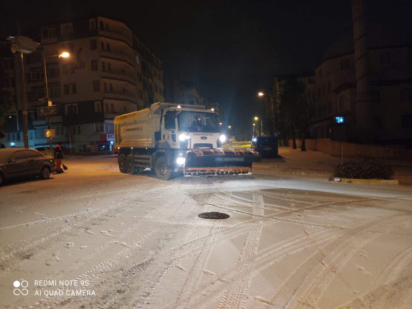 Çorum’da gece saatlerinde etkili olan kar yağışı sebebiyle, şehir beyaz örtüye bürünürken teyakkuzda olan Belediyemiz ekipleri anında karla mücadele çalışması başlattı.