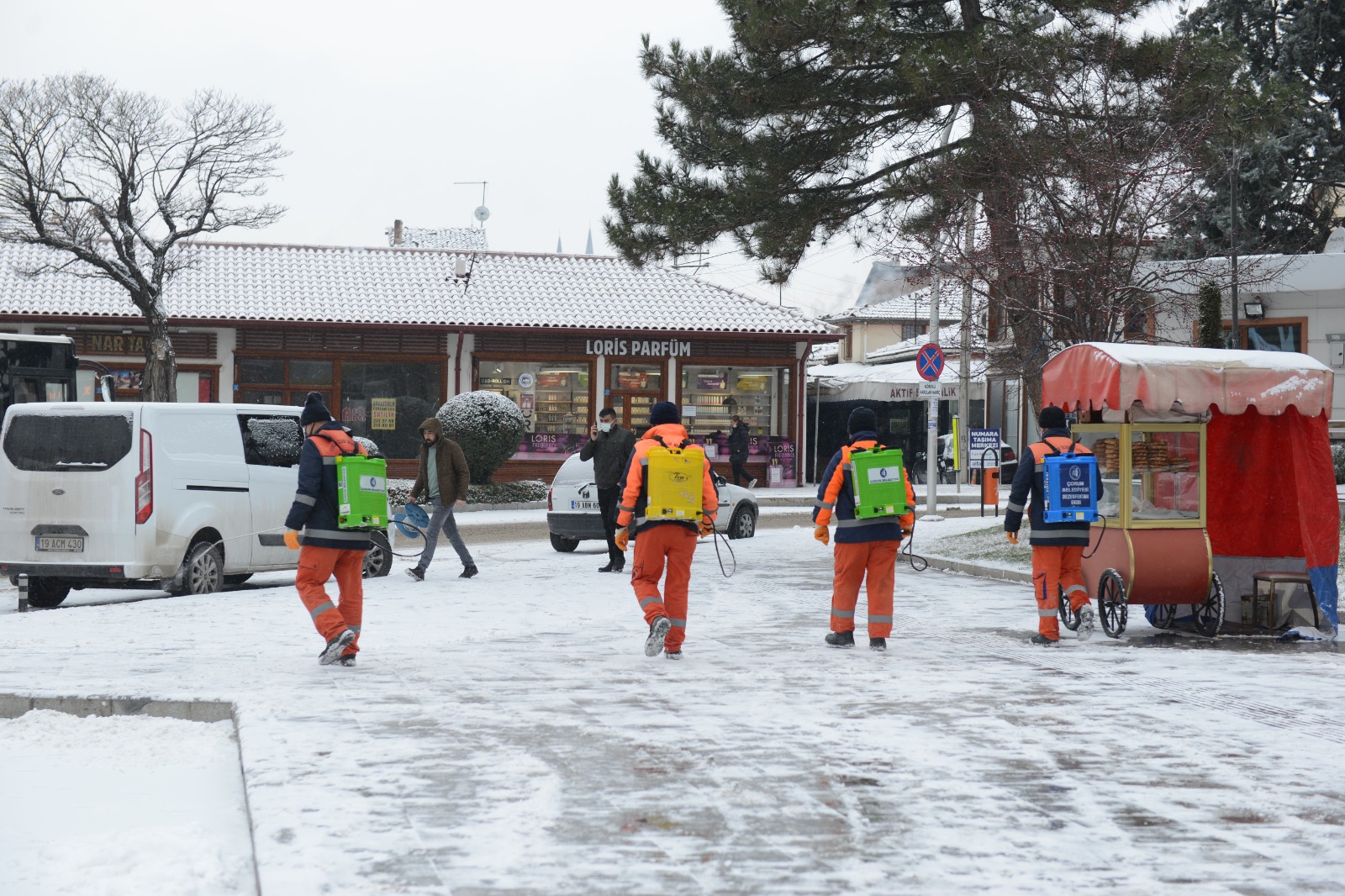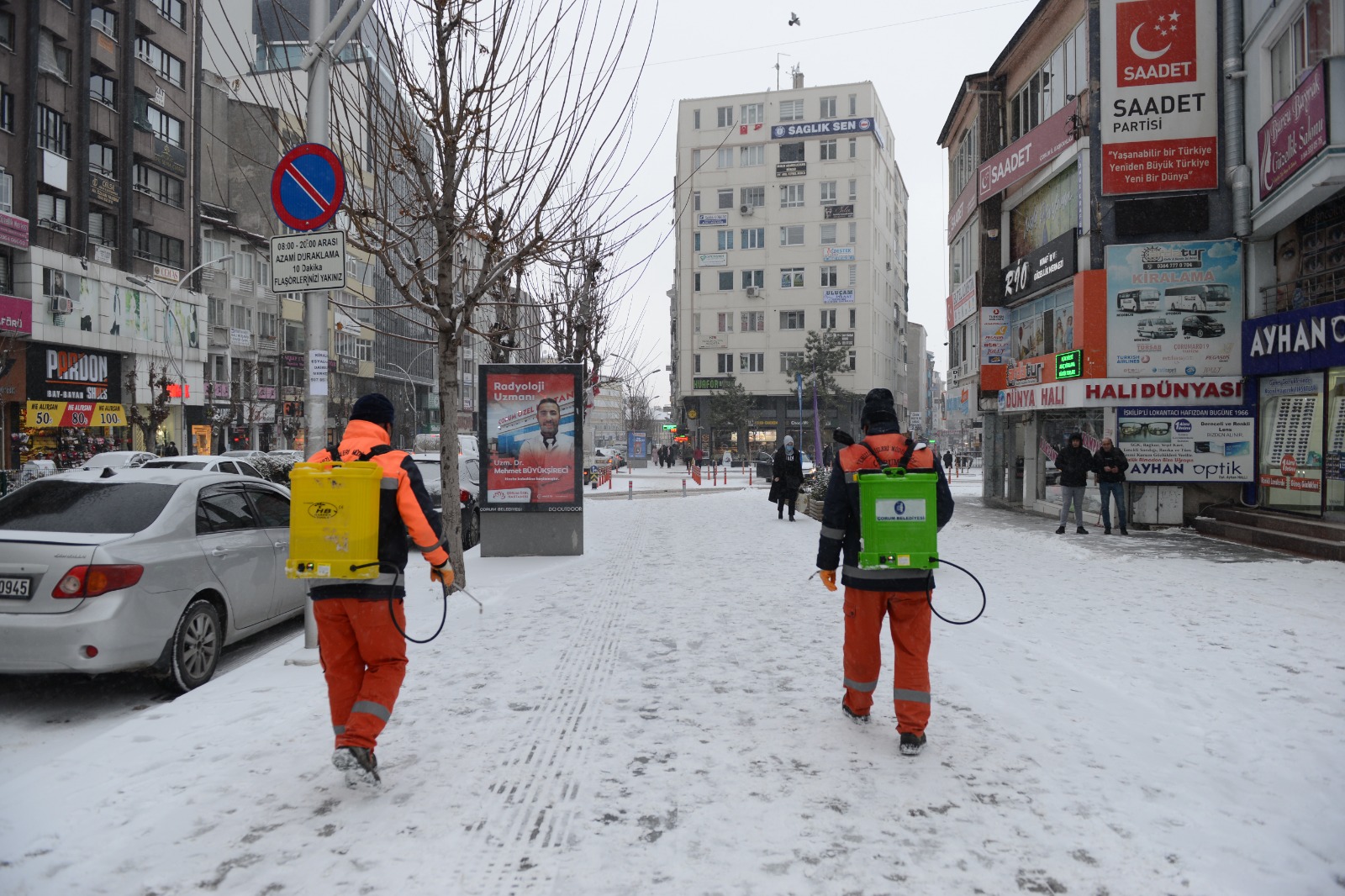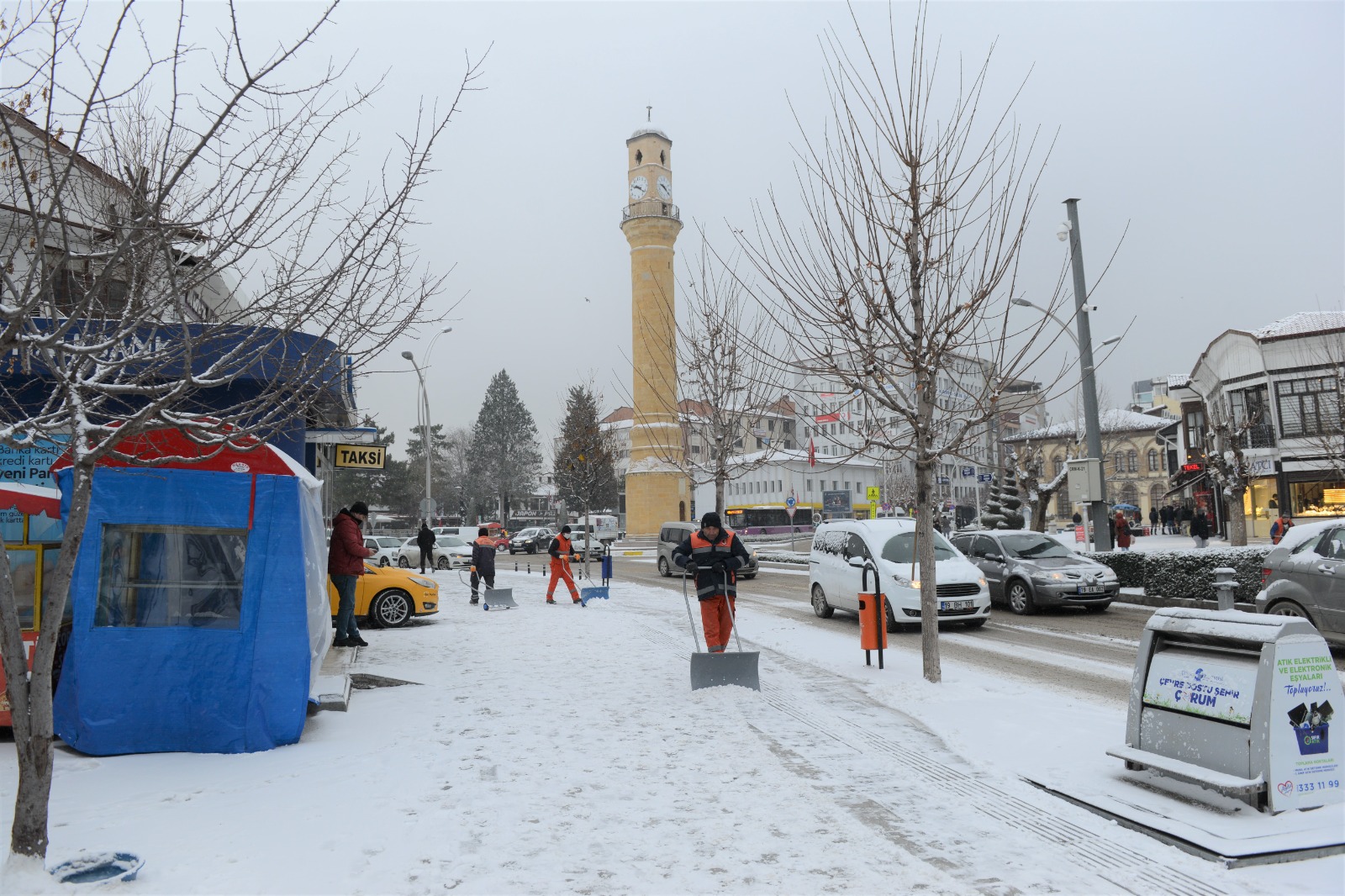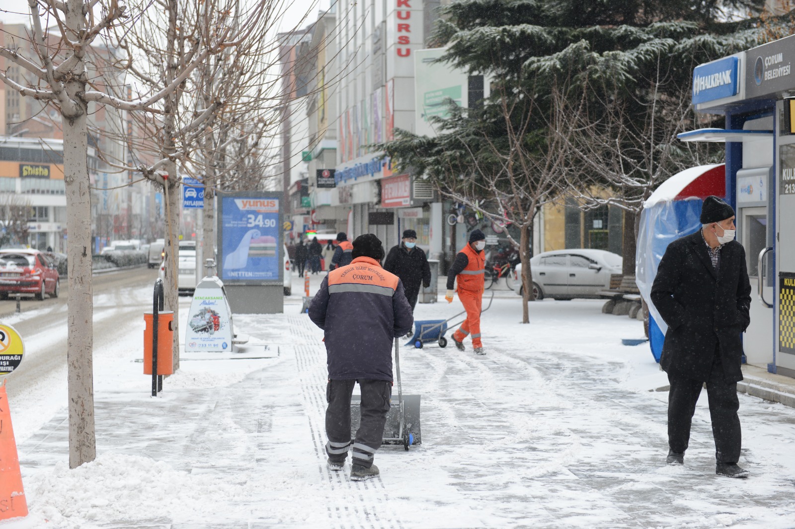 Çorum’da gece saatlerinde etkili olan kar yağışı kenti beyaza bürüdü. Kar yağışının başlamasıyla birlikte Belediyemiz de hem araçların hem de yayaların ulaşım problemi yaşamaması için çalışmalarına hemen başladı. Karla Mücadele Koordinasyon Merkezi tarafından organize edilen  çalışmalar sabahın erken saatlerinde başladı.