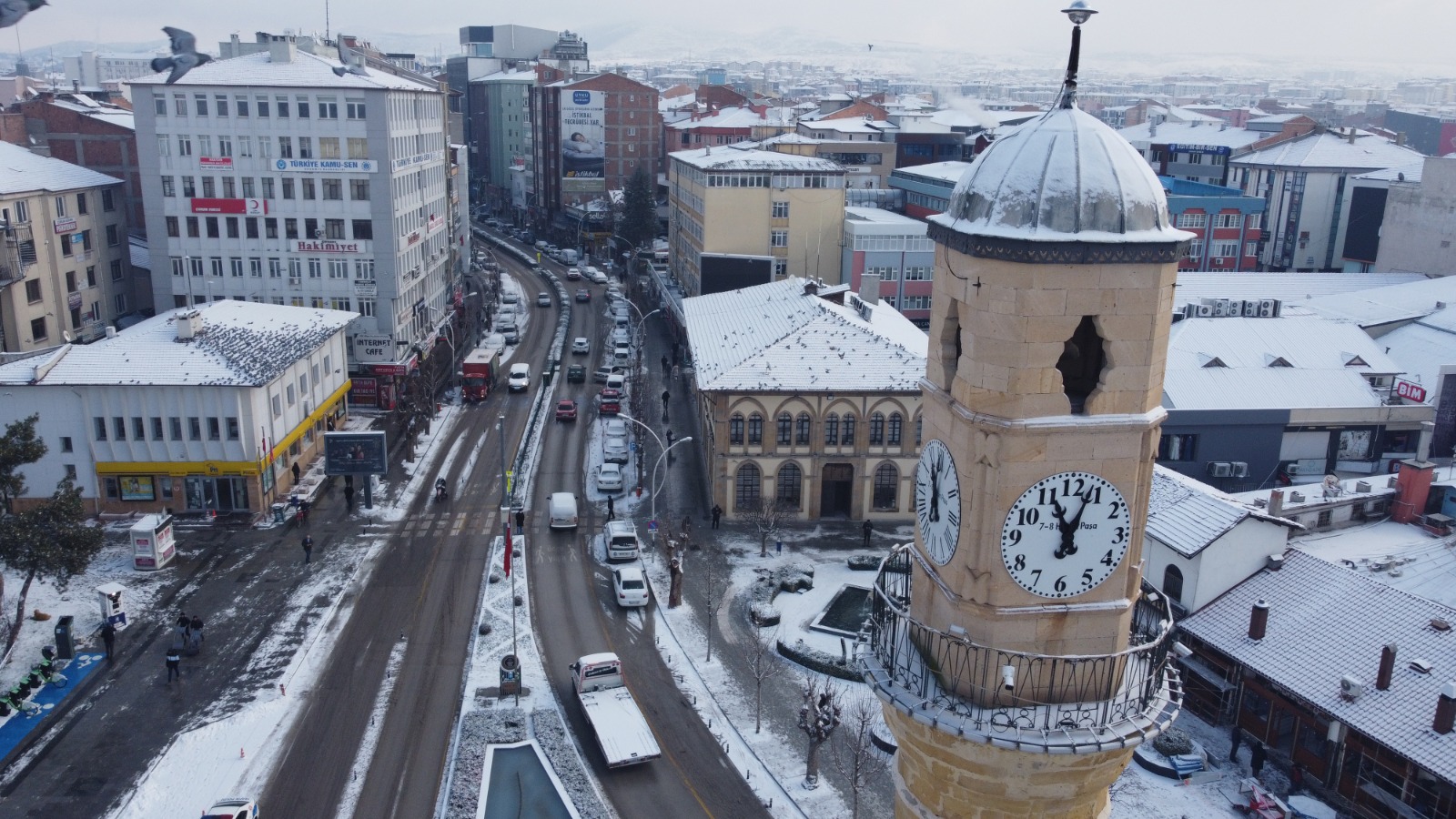 Çorum’da gece saatlerinde etkili olan kar yağışı sebebiyle, şehir beyaz örtüye büründü. Kentte kar yağışı ile birlikte kartpostallık manzaralar oluştu.