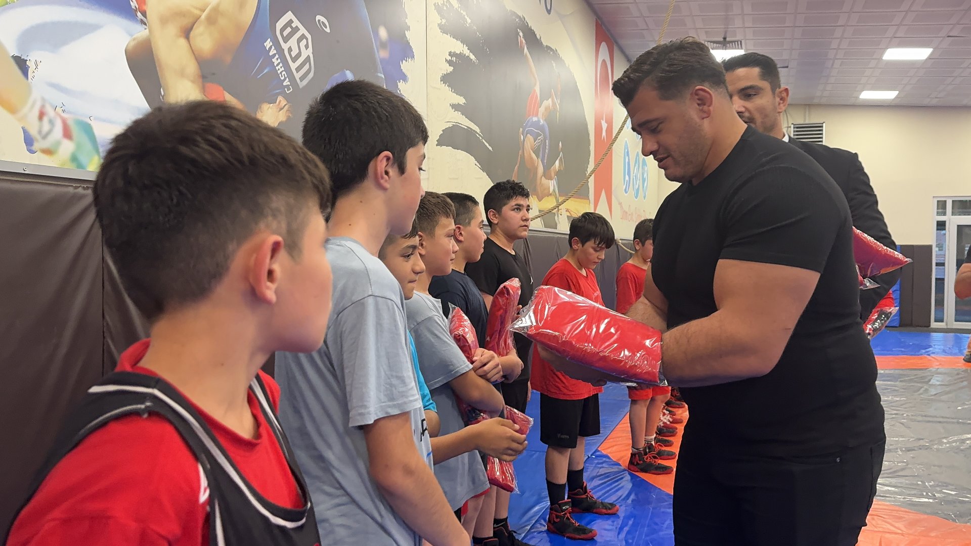 Çorum Belediyesi Spor Kulübü Güreş Takımı’nı ziyaret eden Taha Akgül ve Rıza Kayaalp güreşçilerle bir süre sohbet ederek milli takım eşofmanı hediye etti.