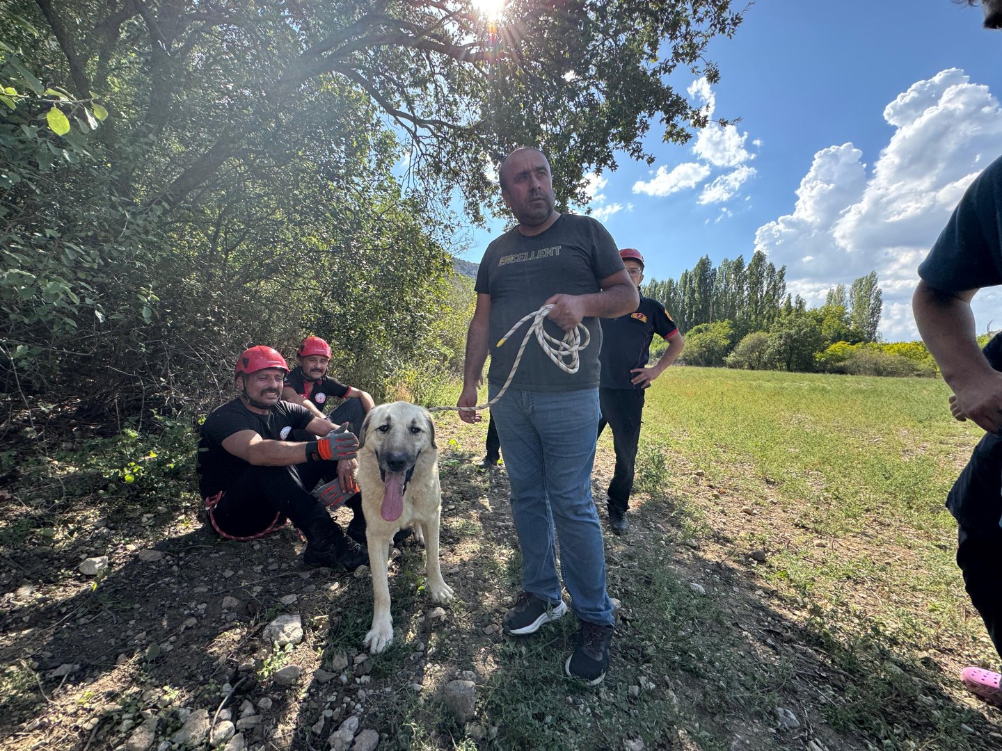 Çorum Belediyesi İtfaiye Müdürlüğü ekipleri kayalıklarda mahsur kalan köpek için seferber oldu.
