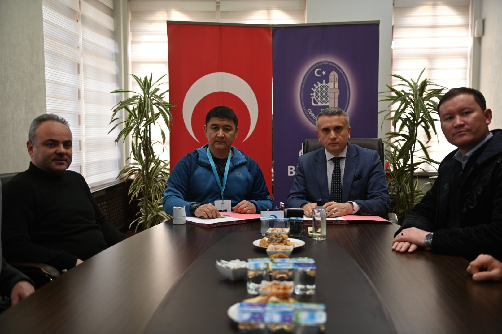 Hitit Üniversitesi’nde doktora yapan vakıf yöneticisi Timur Nussipkhanov’un rehberliğinde ilimize gelen heyet, Çorum’u ziyaretlerinin ardından incelemelerde bulunmak üzere deprem bölgesine gitti.