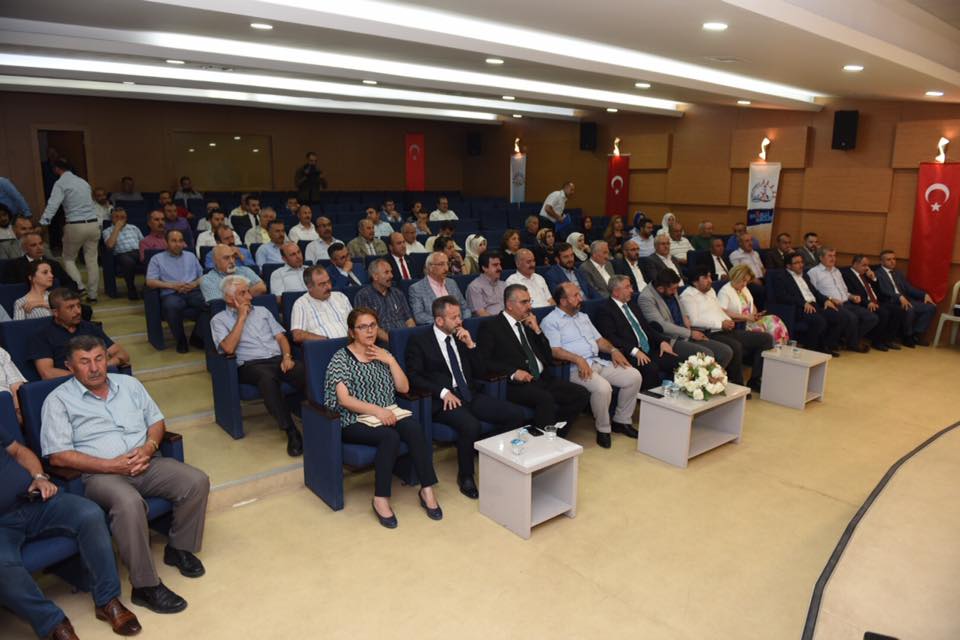 Başkan Aşgın, “O şeffaf çizginin çizildiği yıllardır o yıllar ve 57 canımızı kaybettik. Yine bundan 26 yıl önce 1993 yılında 2 Temmuz da Sivas’ta 37 canımız kaybettik. Yine bundan 26 yıl önce 5 Temmuz da Baş bağlarda 33 canımızı kaybettik. Gerçekten birliğe beraberliğe kardeşliğe ne kadar ihtiyacımızın olduğu eğer aramızda sevgi olmazsa muhabbet olmaza kardeşlik olmazsa sonucunun neler olduğunu gösteren sadece Temmuz ayının ilk haftasında vuku bulmuş olaylar bunlar. Biz arzu ediyoruz ki, barışın kardeşliğinin merkezi olan dünyanın merkezi olduğu gibi sevginin merkezi olan Çorum ilinde Allah’ın izni ile bir daha böyle bir şeyle asla yaşanmasın istiyoruz. Biz 15 tane mahallemizin bir ve beraber düşünüyoruz, kardeş biliyoruz. Çünkü biz Yunus Emre’nin dediği gibi ‘’72 millete tek gözle bakmayan halka müderris olsa hakka asidir’’ buna inanmışız. Yine Yunus diliyle ifade edecek olursak ’’ biz gelmedik dava için bizim işimiz sevgi için aşkın evi gönüllerdir gönüller yapmaya geldik’’ diye konuştu.