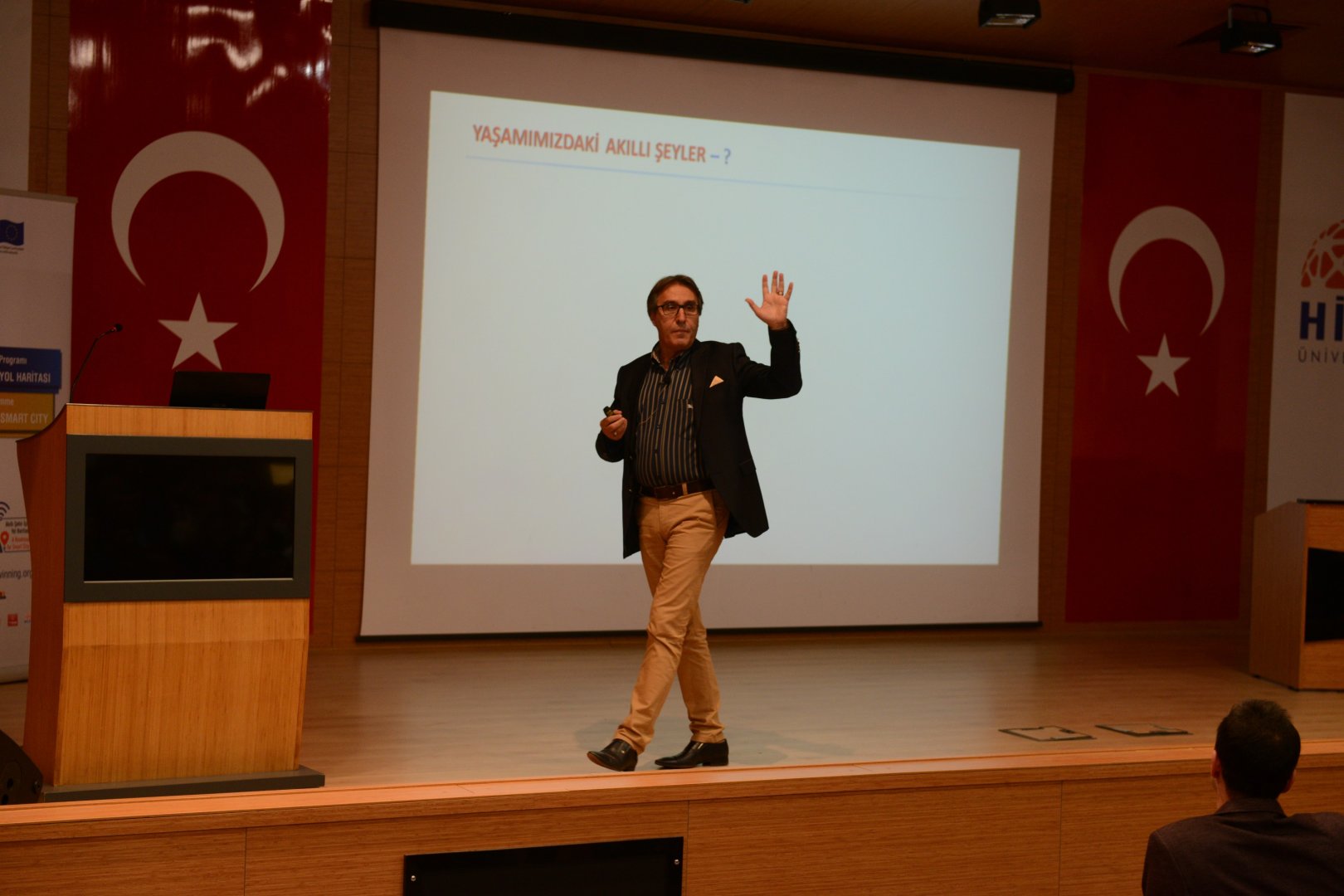 Avrupa Birliği Şehir Eşleşme Programı Kapsamında gerçekleştirilen etkinliklere bir yenisi daha eklendi. Uz. Dr. Emin Bank, Hitit Üniversitesi MYO Erol Olçok Konferans salonunda Belediye Başkan Yardımcısı Lemzi Çöplü, ilgili birim müdürleri ve belediye çalışanları ile öğrencilerin katıldığı bir bilgilendirme konferansı verdi. “Kentleşme ve Akıllı Şehirler” konulu konferansta akıllı şehir nedir, nasıl uygulamalar yapılmalı konularına değindi. Bank, “Akıllı şehir uygulamalarında öncelik hayatı kolaylaştırmak olmalıdır. Çünkü bunların hepsi insan odaklı çalışmalar. Daha sonra önem sırasına göre sürdürülebilirlik olması gerekir. Bir uygulama yaptınız bunu ekonomik veya teknik açıdan sürdürülebilir kılamazsanız bu fayda sağlamak yerine zarara dönüşür” dedi.