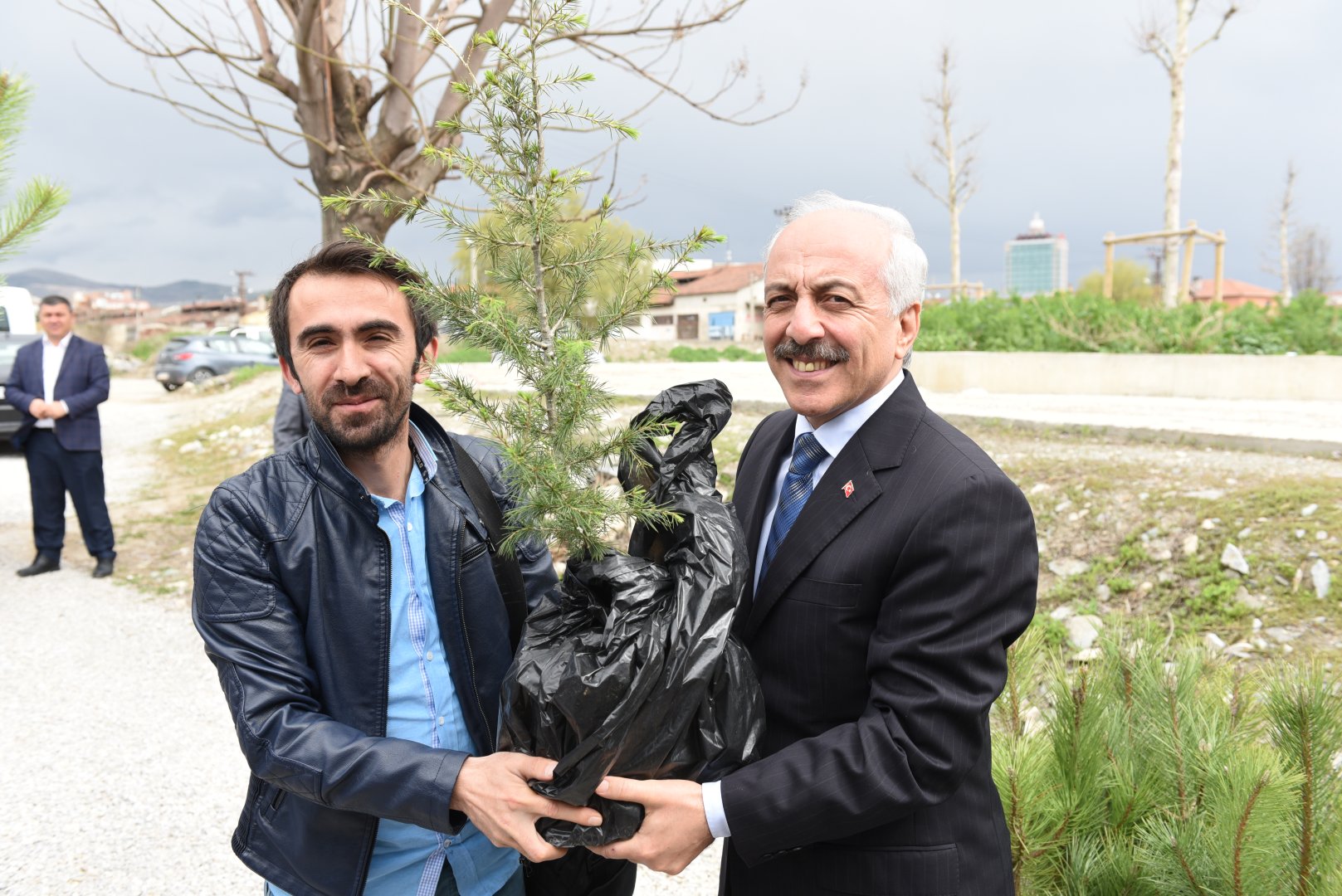 Belediye Başkanı Gül, açıklamalarının ardından toplantıyı takip eden basın mensuplarına çam fidanı armağan etti.