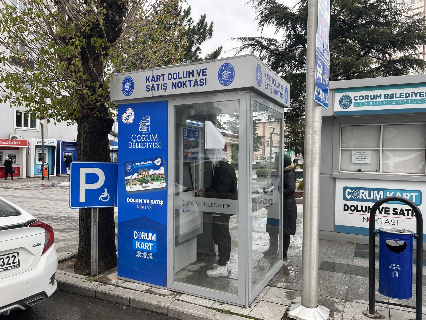 Çorum Belediyesi Ulaşım Hizmetleri Müdürlüğü 3 olan KİOSK sayısını 6’ya yükseltti. Çorum Belediyesi’nden yapılan açıklamada vatandaşlardan gelen talepler ve yoğun olarak kullanılan duraklar göz önünde bulundurularak 3 noktada bulunan dolum noktalarına yenilerini de ekleyerek sayının 6’ya çıkartıldığı belirtildi. KİOSK cihazlarının Recep Tayyip Erdoğan Caddesi Merkez durak, Valilik durağı, Kubbeli durağı, Orman İşletme Müdürlüğü durağı, Hasan Paşa Hastanesi durağı ve Erol Olçok Eğitim ve Araştırma Hastanesi durağından bulunduğu vatandaşların bu noktalardan kolayca dolum yapabileceği ifade edildi.