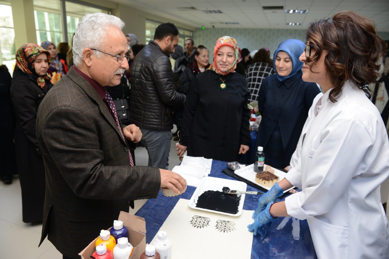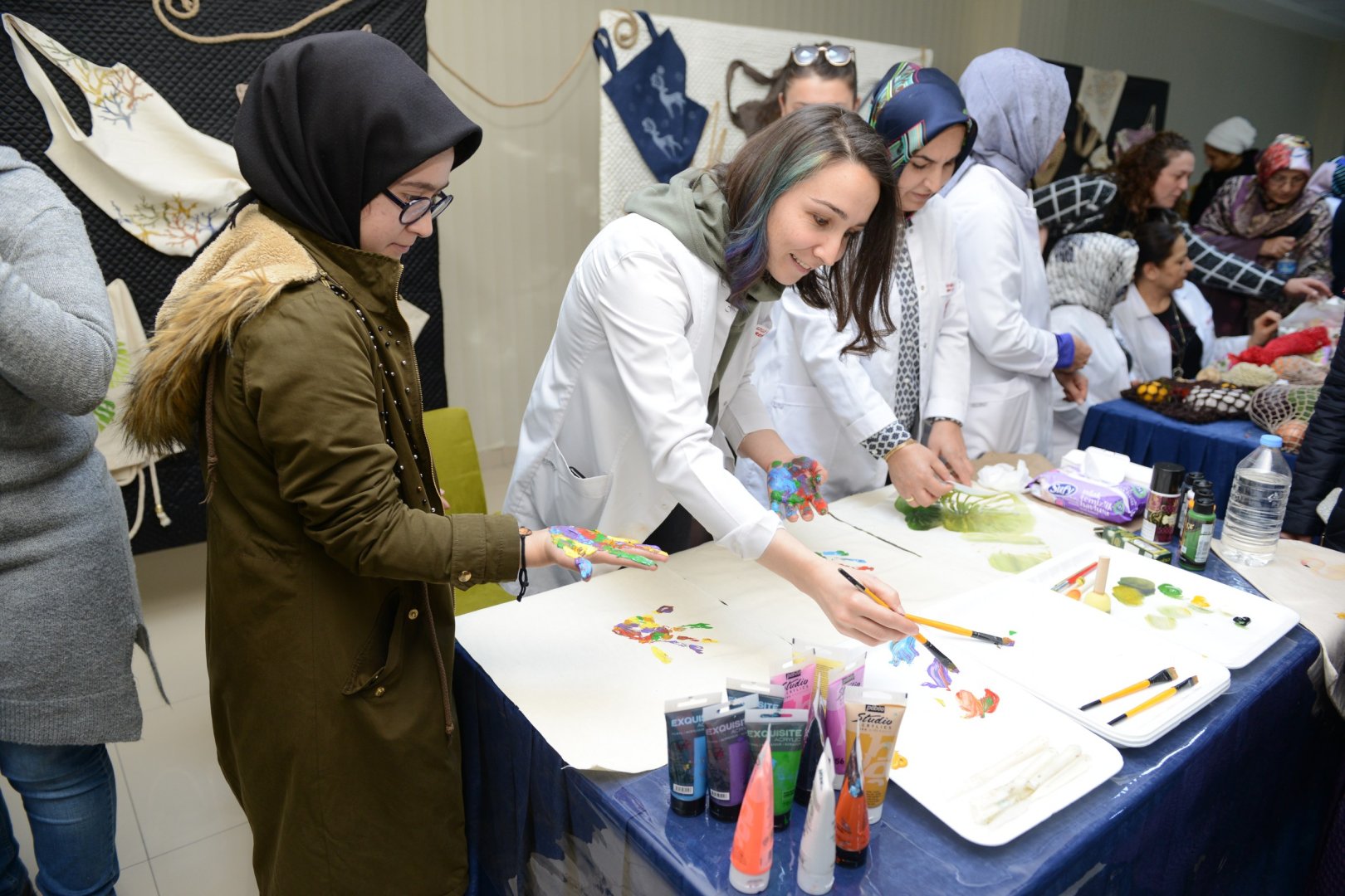 Programa katılanlar, Prof. Dr. Dursun Ali Köse’nin yapmış olduğu sunumun ardından Çorum Belediyesi Kadın Kültür Merkezi hocalarının yapmış olduğu workshopa katıldı. Sergide poşete alternatif şile bezlerine baskı yöntemiyle özel tasarım alışveriş çantaları ve örgü fileler sergilendi.