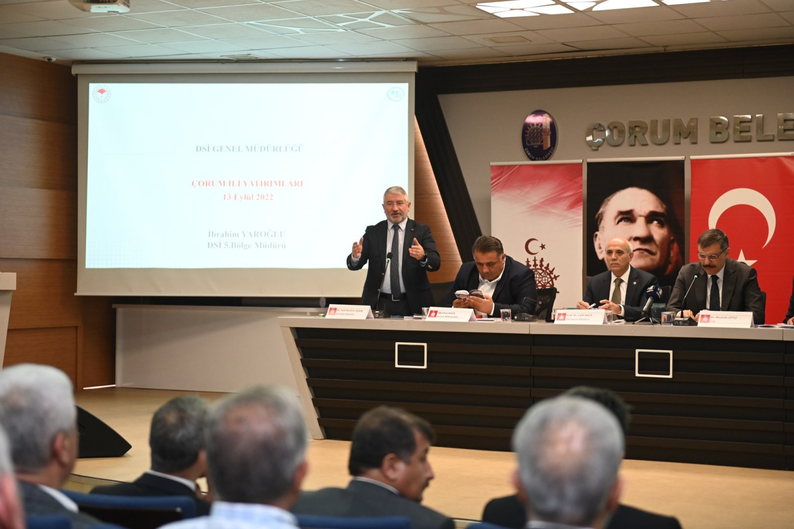 Devlet Su İşleri Genel Müdürlüğü’nün Çorum’da gerçekleştirdiği çalışmalar, devam eden ve planlanan projeleriyle ilgili istişare toplantısı yapıldı. Toplantıya Devlet Su İşleri Genel Müdürü Prof. Dr. Lütfi Akca, Çorum Valisi Mustafa Çiftçi, AK Parti Çorum Milletvekilleri Ahmet Sami Ceylan, Oğuzhan Kaya, Erol Kavuncu, Belediye Başkanı Dr. Halil İbrahim Aşgın, AK Parti İl Başkanı Yusuf Ahlatcı, MHP İl Başkanı Agah Karapıçak, Büyük Birlik Partisi İl Başkanı Şakir Yıldırım ve ilçe belediye başkanları katıldı.