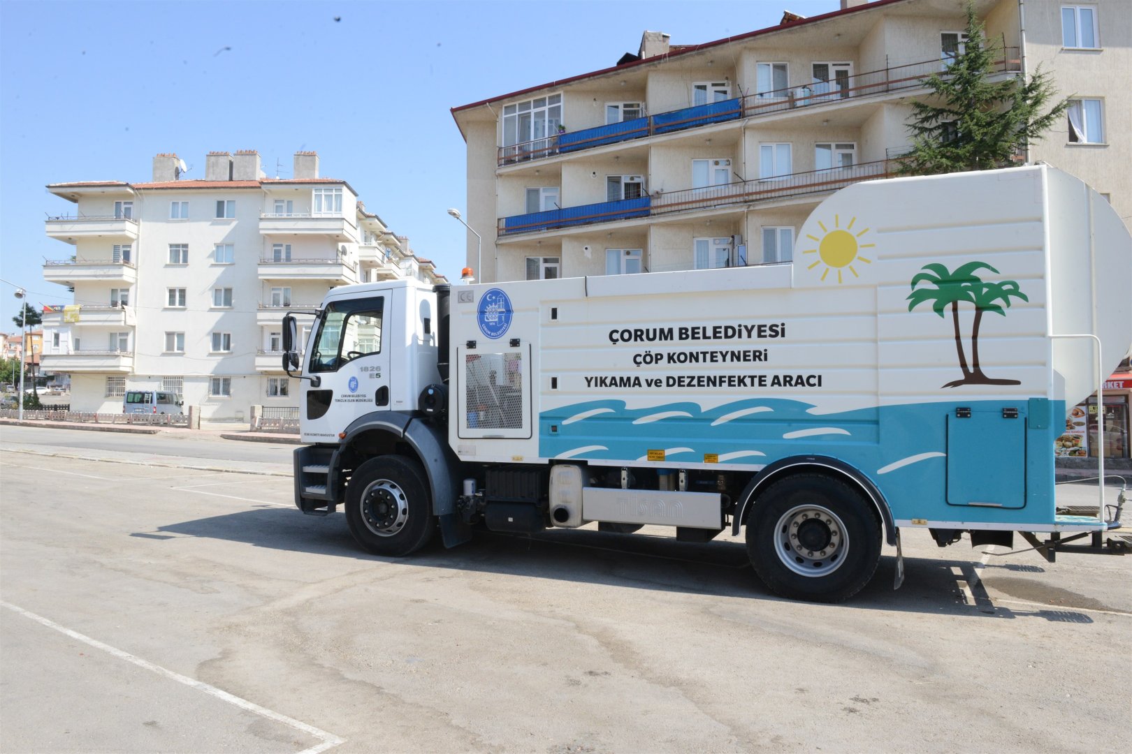 Çorum Belediyesitemiz bir çevre anlayışıyla çevre temizliğiyle ilgili çalışmalarını sürdürüyor. Çöp konteynırlarında meydana gelen kokuları ortadan kaldırmak için kullanılan yıkama ve dezenfekte aracı tam mesai çalışıyor.