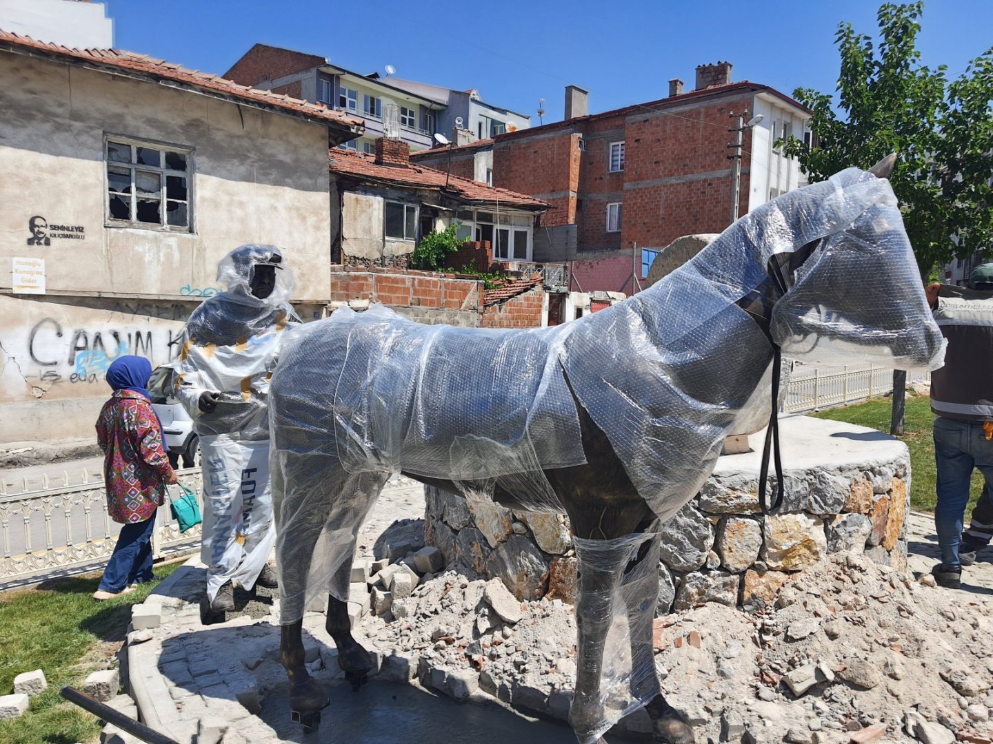 Başkan Aşgın “Kadeş Barış Meydanı arkasındaki Gerip Dede Sokak’ta başlattığımız Yitik Mirası Canlandırma Projesi de çok önemsediğimiz çalışmalarımızdan biri. Köklü kültürümüzün birer yansıması olan tarihi sokak çeşmelerini, soku, arsana, çamaşır (tekne) taşı gibi kültürümüzde önemli yeri bulunan ögeleri yeniden canlandırdık.” dedi. Projeye verdiği destekler nedeniyle Hasan Tuluk’a teşekkür eden Başkan Aşgın, çalışan insan figürlerinin yerleştirilmesiyle projenin tamamlanarak açılacağını söyledi.