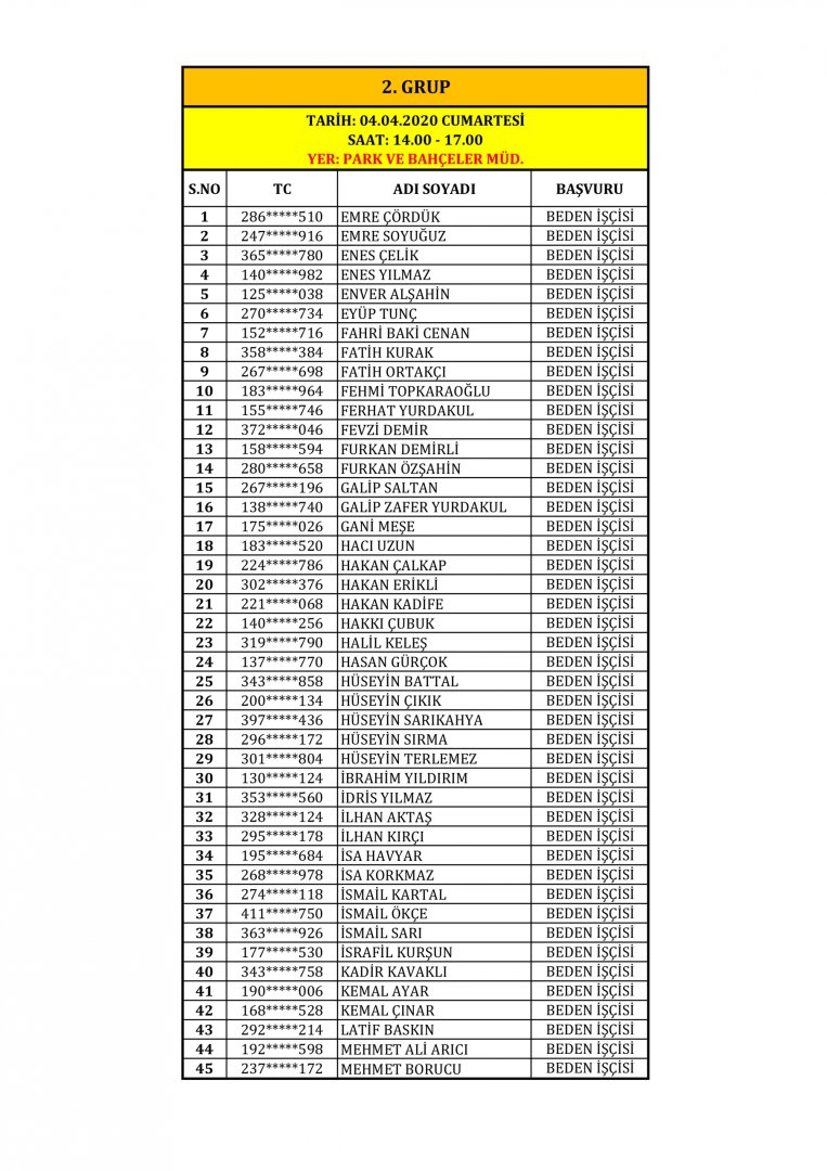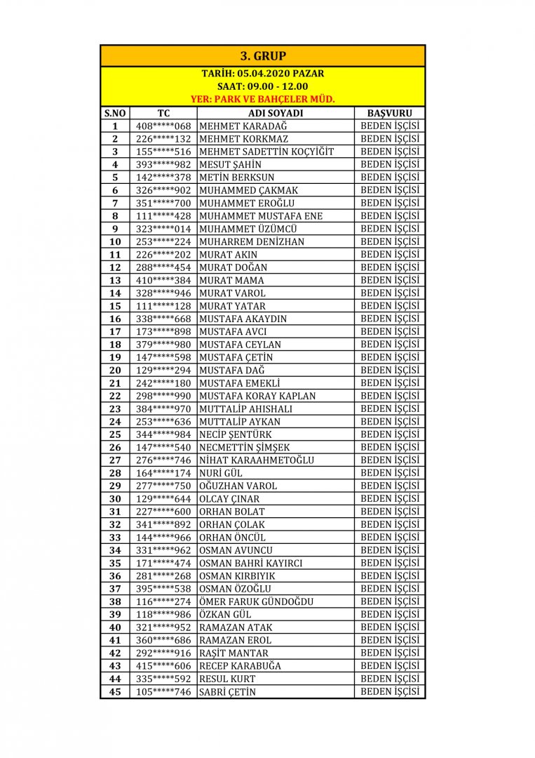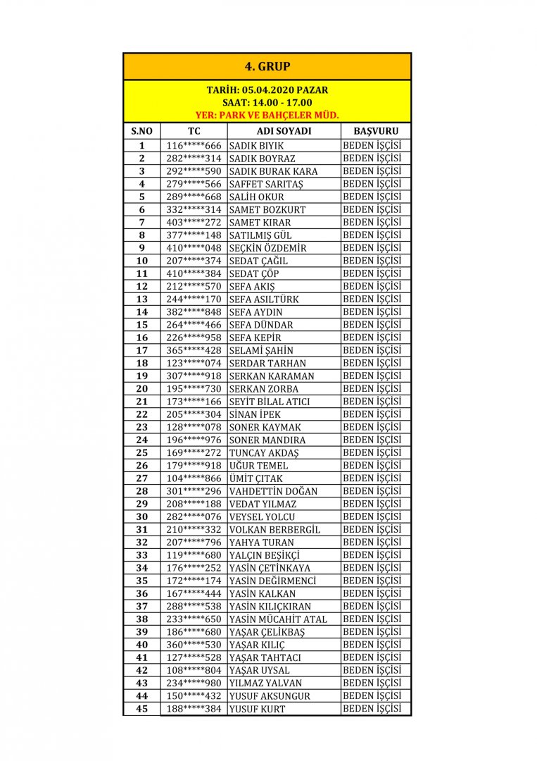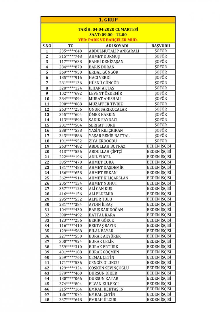 1.2.3. ve 4. gruptan oluşan listelerin üzerinde hangi tarihte ve saatte mülakata girileceğinin bilgileri yer alıyor. Mülakata gelirken nüfus cüzdanı dışında herhangi bir belge getirmenize gerek yoktur. Mülakat yeri: Park ve Bahçeler Müdürlüğü (İtfaiye Yanı)