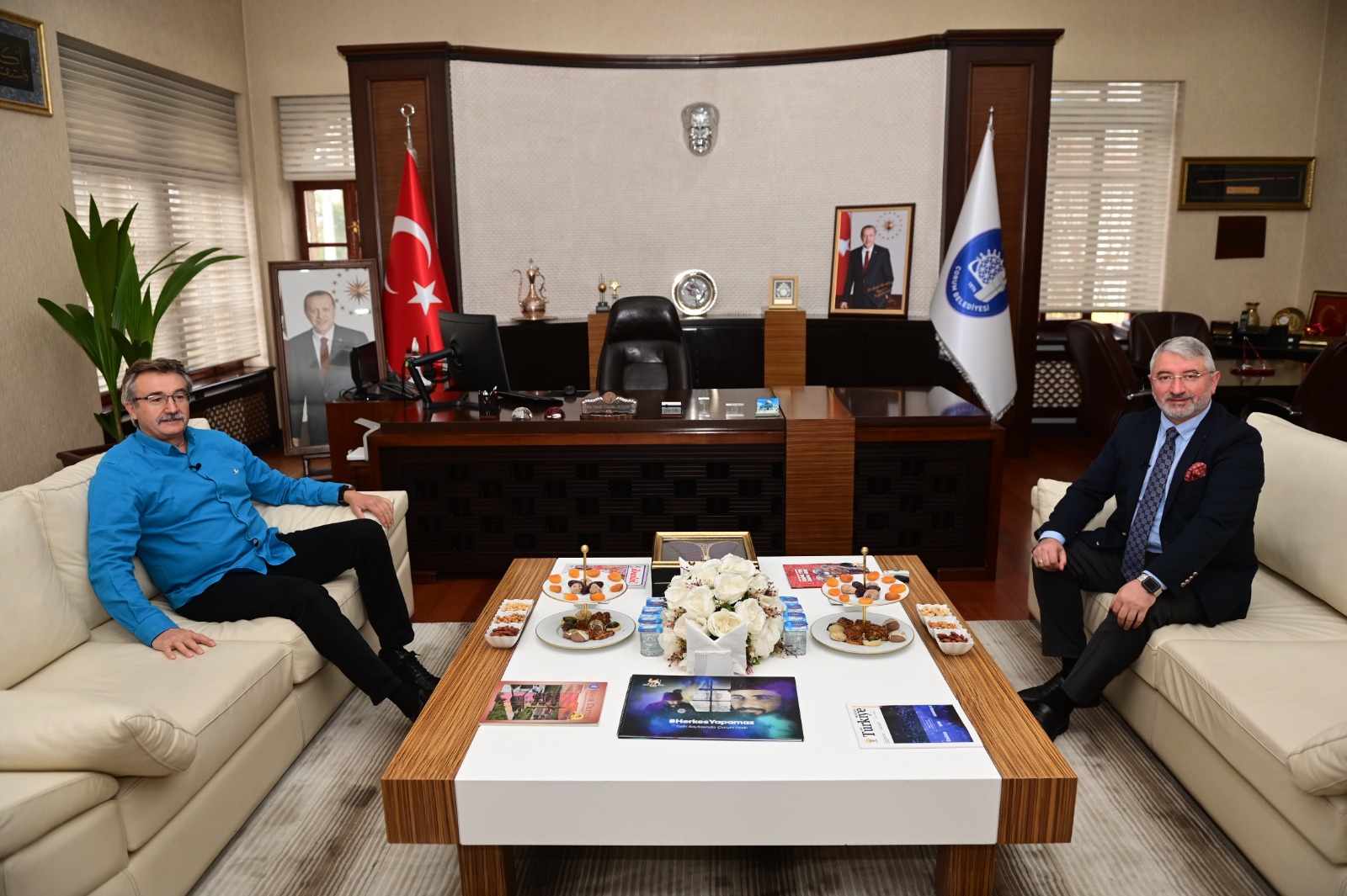 Önceki dönem devlet bakanlarından Kürşad Tüzmen, Haber Global ekranlarında yayınlanan “Kürşad Tüzmen ile Benim Şehrim Çorum” programının çekimleri için Çorum’a geldi. Başkan Aşgın, motosikletiyle Türkiye’yi gezen Kürşad Tüzmen’in program konuğu oldu.
