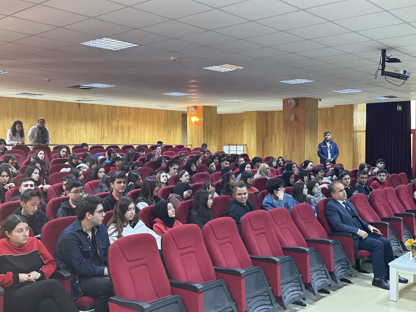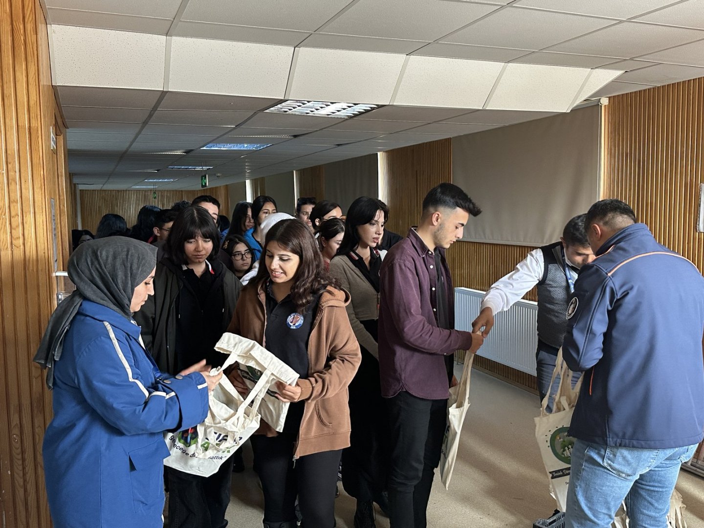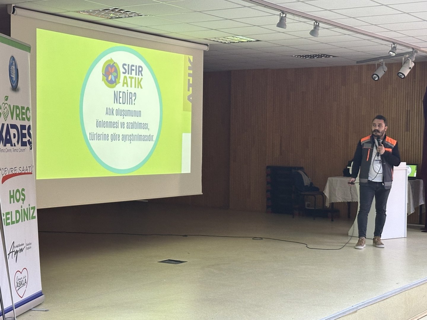 Güzel Sanatlar Lisesi’nde gerçekleştirilen seminerde öğrencilere, geri dönüşebilir atıklarının toplanması, sürdürülebilir kalkınma ilkesine uygun olarak çevrenin korunması, atık oluşumunun önlenmesi, azaltılması, türlerine göre kaynağında ayrıştırılması, yeniden kullanılması ve geri kazanımı konularında bilgiler verildi.