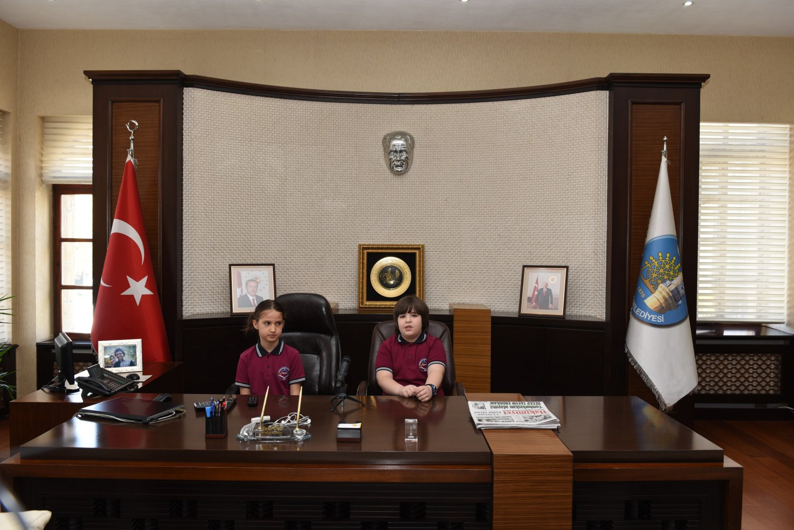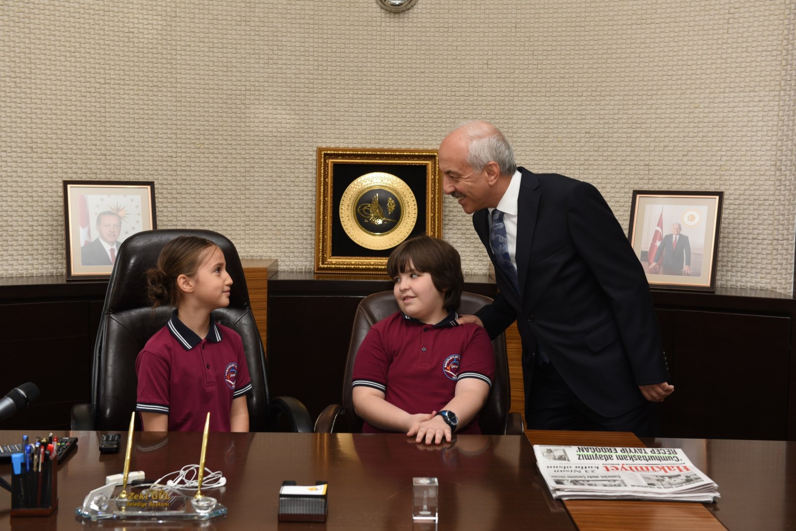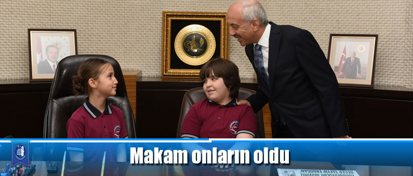 23 Nisan Ulusal Egemenlik ve Çocuk Bayramı kutlamaları etkinlikleri çerçevesinde Bahçelievler İlkokulu öğrencileri Efehan Bora Ünsal ve Ada Kılıçarslan Belediye Başkanı Zeki Gül’ün makamına oturdu.