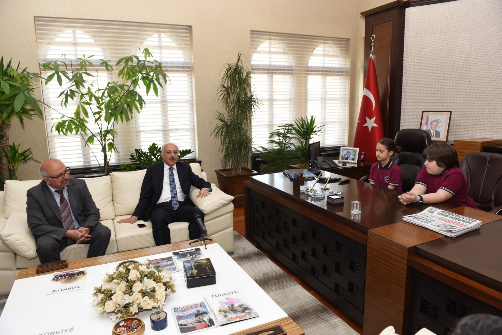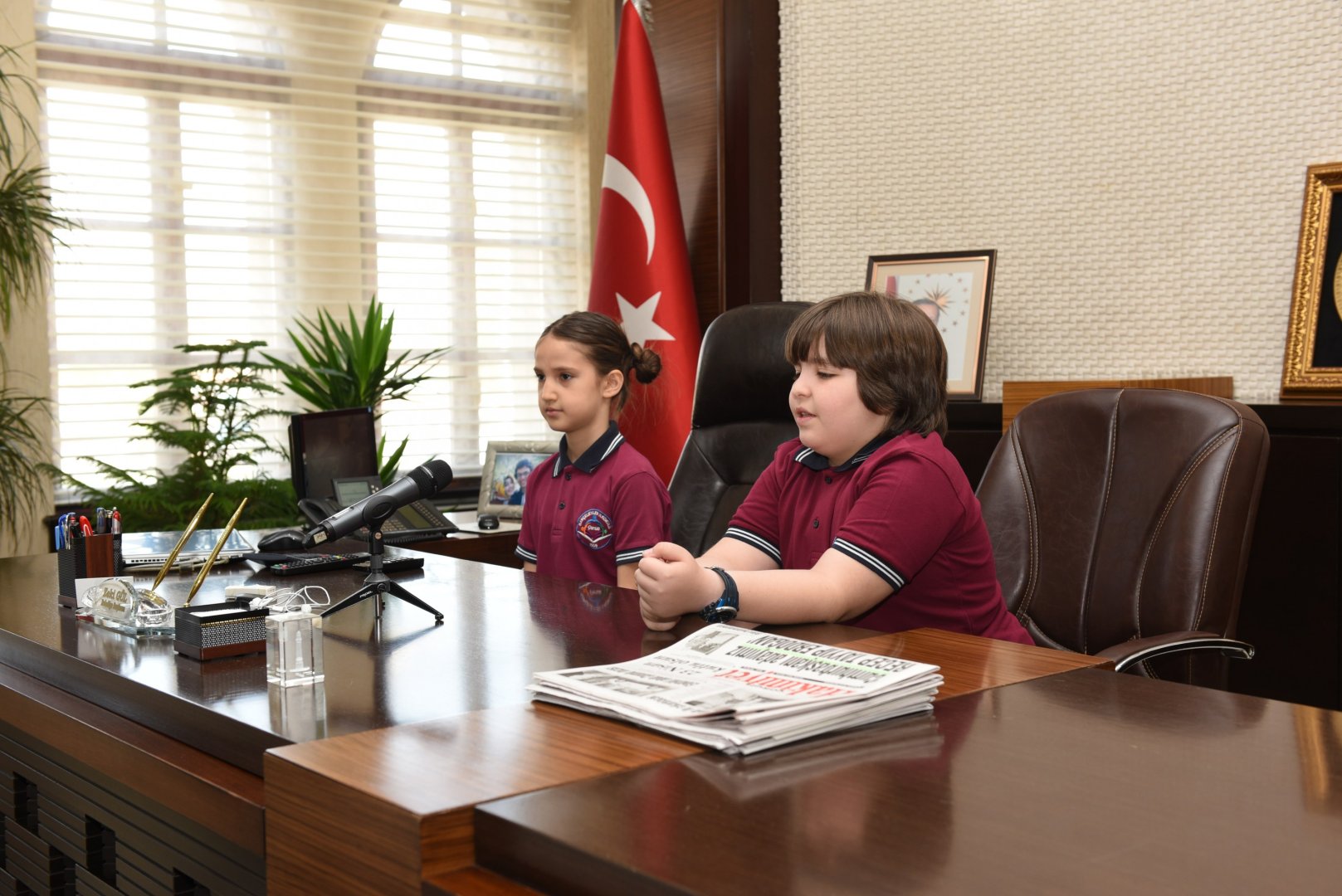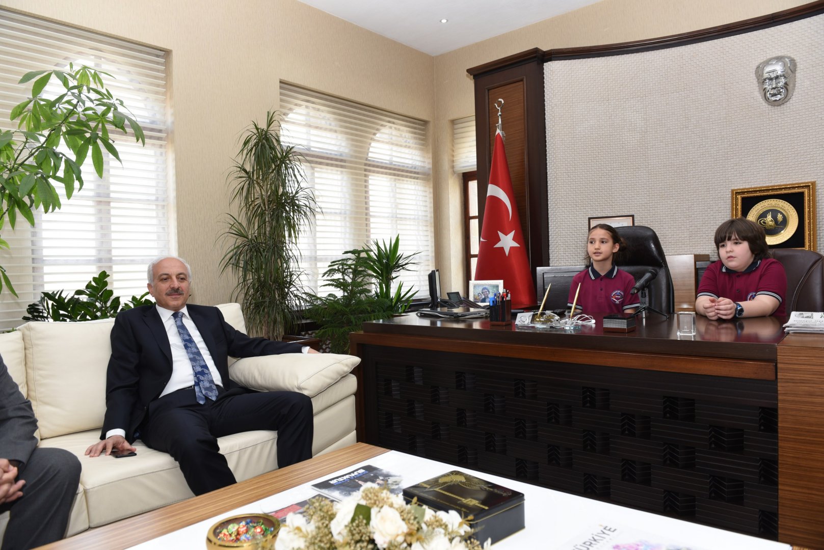 23 Nisan Ulusal Egemenlik ve Çocuk Bayramı kutlamaları etkinlikleri çerçevesinde Bahçelievler İlkokulu öğrencileri Efehan Bora Ünsal ve Ada Kılıçarslan Belediye Başkanı Zeki Gül’ün makamına oturdu.