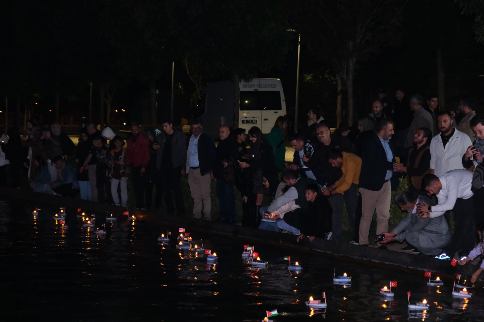 Çorum Belediyesi Kent Konseyi Gençlik Meclisi tarafından İsrail'in Filistin/Gazze saldırılarının birinci yıldönümü dolayısıyla Millet Bahçesi’nde “Her Gemi; Bir Umut, Bir Filistin” etkinliği düzenledi. 81 ili temsilen suya maket gemiler bırakıldı.