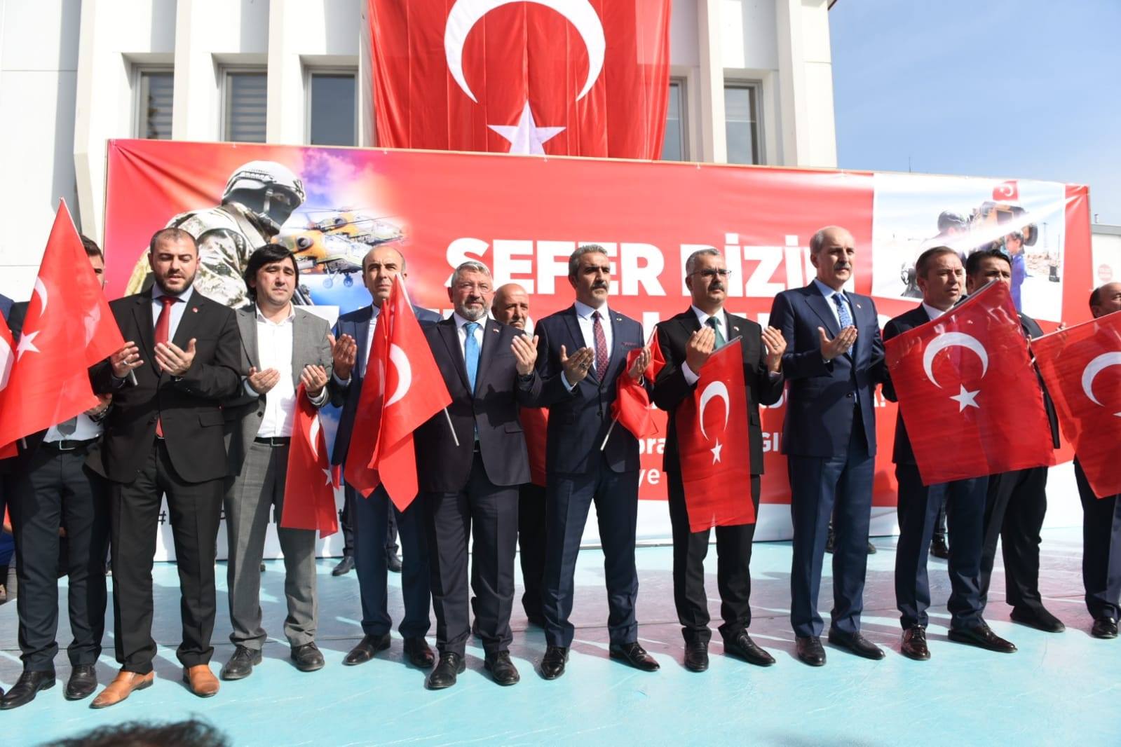 Hürriyet Meydanı’nda düzenlenen dua etkinliğinde harekatın başarılı geçmesi ve Mehmetçiğin zaferi için eller semaya açıldı. Suriye’de terör örgütlerini yok etmek için çarpışan kahraman Türk askerinin zaferi için dua edildi.