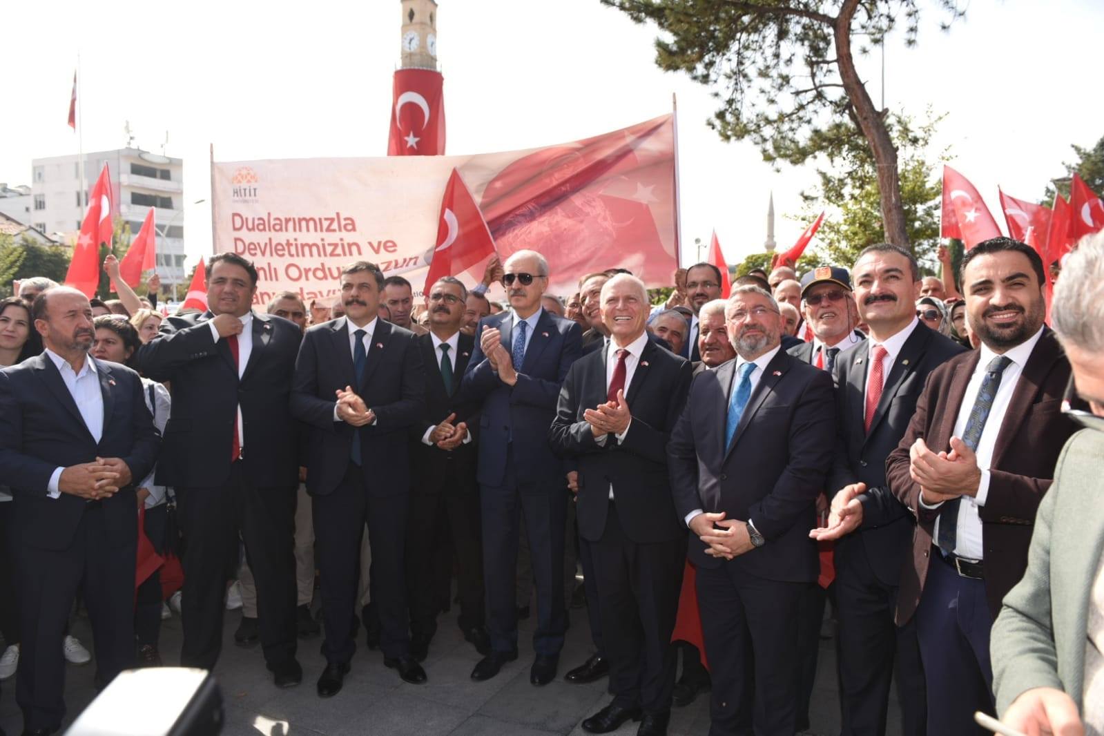 Konuşmaların ardından İl Müftüsü Muharrem Biçer tarafından Barış Pınarı Harekatı’na katılan tüm Mehmetçiklerimiz için dua edildi. Etkinliğe AK Parti Milletvekilleri Ahmet Sami Ceylan, Oğuzhan Kaya, Erol Kavuncu, Hitit Üniversitesi Rektörü Prof. Dr. Ali Osman Öztürk, Belediye Başkanı Dr. Halil İbrahim Aşgın, AK Parti İl Başkanı Yusuf Ahlatcı, CHP İl Başkanı Hasan Eray Tüfekç, MHP İl Başkanı Agah Karapıçak, Saadet Partisi İl Başkanı Faruk Cıdık, Yeniden Refah Partisi İl Başkanı Yakup Taş, İyi Parti İl Başkanı Bekir Özsaçmacı, ÇESOB Başkanı Recep Gür, STK temsilcileri ve çok sayıda vatandaş katıldı.