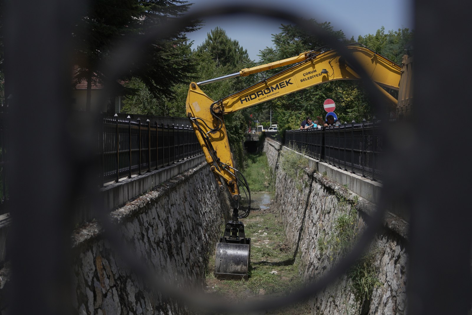 Çorum Belediyesi, şehir merkezindeki derelerde temizlik çalışmalarını sürdürüyor.