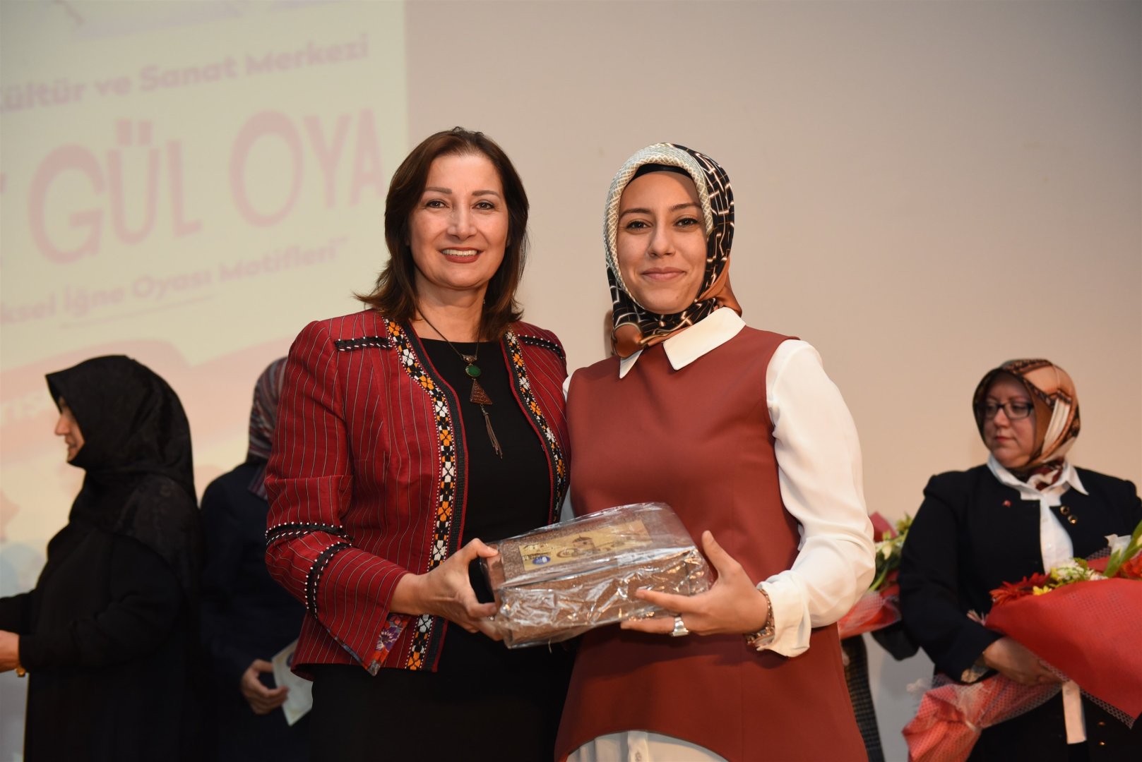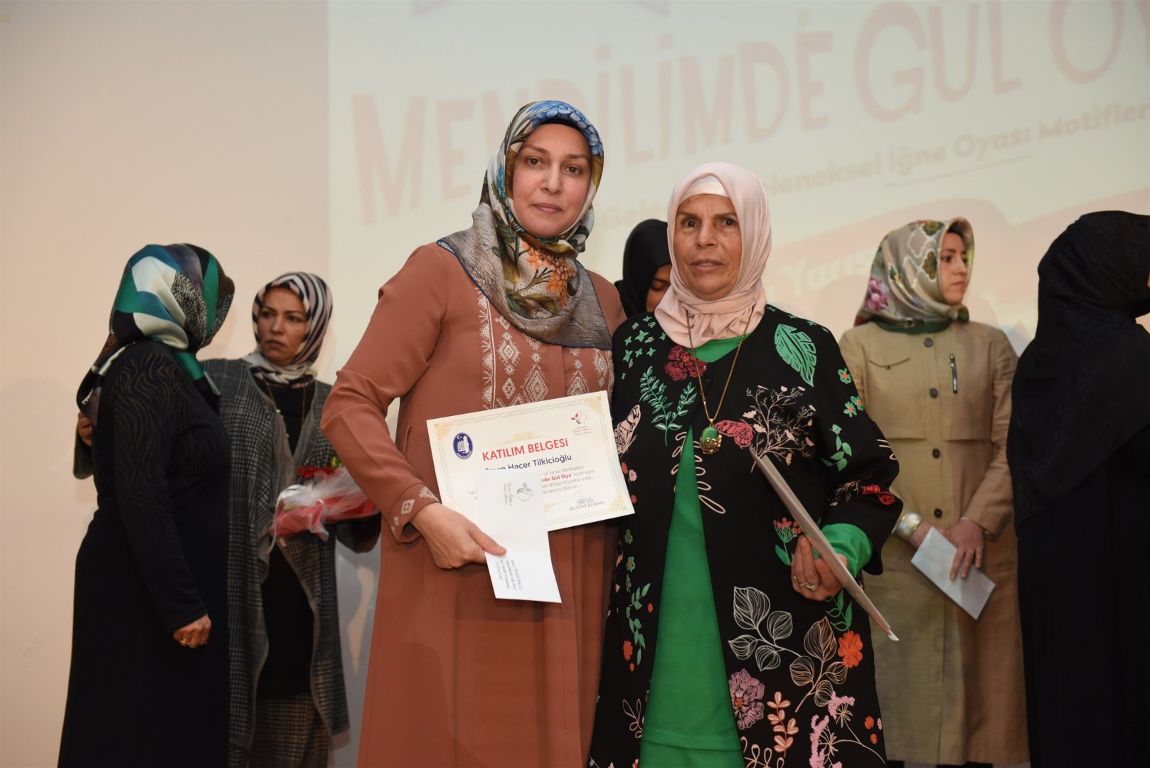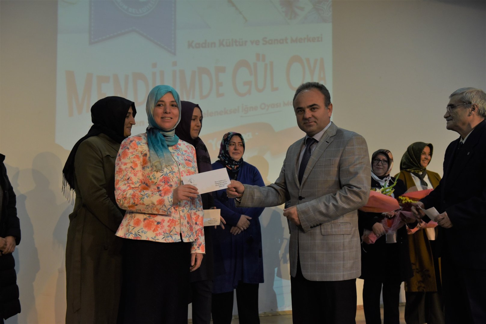 Çorum Belediyesi Kadın Kültür ve Sanat Merkezleri tarafından düzenlenen “Mendilimde Gül Oya; Geçmişten-Geleceğe Geleneksel İğne Oyası Motifleri” yarışmasında dereceye girenlere ödülleri verildi.