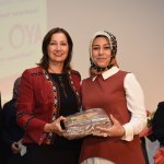 Konuşmaların ardından düzenlenen törenle dereceye giren yarışmacılara verilen ödüllerin yanı sıra eserleri değerlendiren jüri üyelerine ve Kadın Kültür ve Sanat Merkezleri İğne Oyası Öğretmenlerine çiçek ve hediyeler verildi.